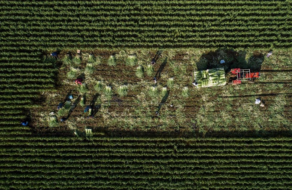 Kışlık sebze üretiminde ülkenin önde gelen merkezleri arasında yer alan İzmir'in Torbalı ilçesinde 5 bin dekar ekili alanda pırasa hasadı başladı. Soğuk ve yağış nedeniyle güçlükle toplanan pırasalar iç pazarın yanı sıra Almanya, Hollanda, İsveç, İsviçre, Polonya ve Bulgaristan'a ihraç ediliyor. Günün erken saatlerinde tarlaya giren aralarında kadınların da bulunduğu işçiler, tarladan sökerek temizledikleri pırasayı yaklaşık 20 kiloluk balyalar halinde paketleyerek araçlara yüklüyor. ( Emin Mengüarslan - Anadolu Ajansı )Emin Mengüarslan