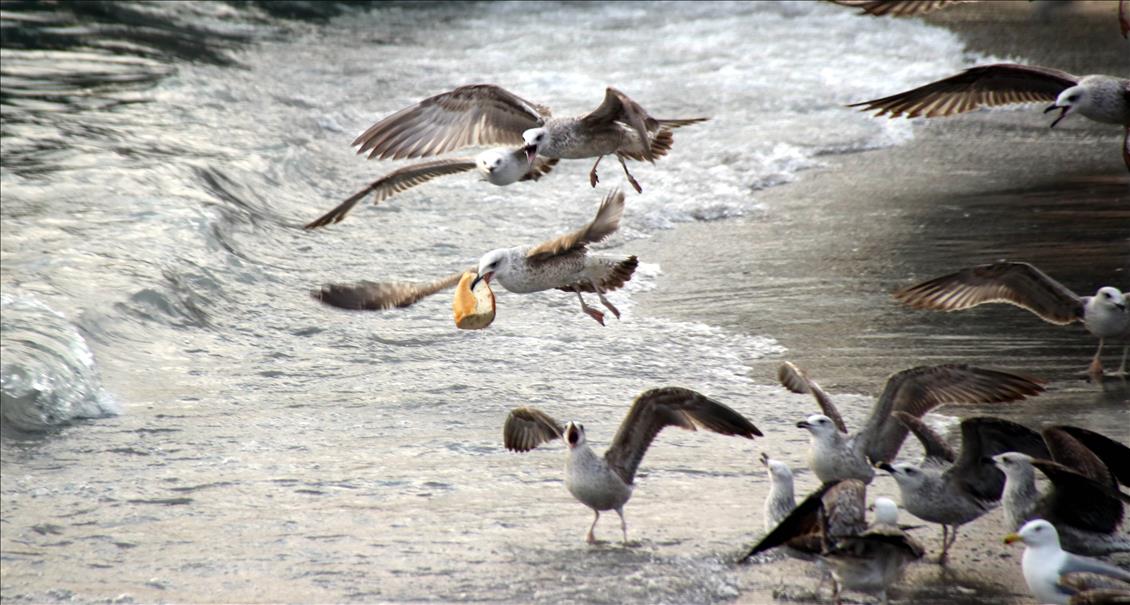 Süleymanpaşa'da sahile akın eden martıların balık kapma mücadelesi renkli görüntüler oluşturuyor. Bazı martılar da vatandaşların ekmeklerini kaptı. ( Mesut Karaduman - Anadolu Ajansı )Mesut Karaduman