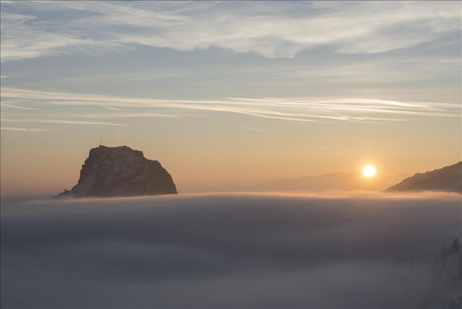 Afyonkarahisar'a adını veren tarihi "Karahisar Kalesi" sabah saatlerinde kentte etkili olan sisle güzel görüntü oluşturdu. ( Arif Yavuz - Anadolu Ajansı )Arif Yavuz