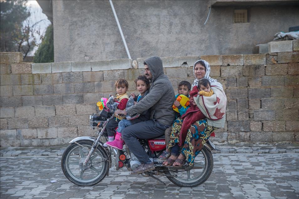 Şanlıurfa'nın Ceylanpınar ilçesinde anne, baba ve biri bebek dört çocuktan oluşan altı kişilik ailenin, motosikletle yaptığı tehlikeli yolculuk dikkat çekti. ( Halil Fidan - Anadolu Ajansı )Halil Fidan