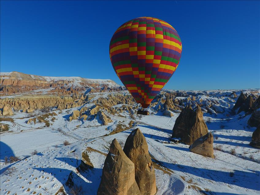 Türkiye'nin gözde turizm merkezi Kapadokya bölgesi, misafirlerine bir günde hem peribacalarıyla kaplı yörede balon turuna çıkma hem Erciyes Dağı'nda kayak yapma hem de Kozaklı'da kaplıca keyfi çıkarma fırsatı sunuyor. Yerli ve yabancı turistlerin gözdesi Kapadokya bölgesi, yarıyıl tatilini balon turu ile kayak ve kaplıca keyfini aynı gün yaşamak isteyenleri bekliyor. Bölgede, tatilciler, sıcak hava balonu turlarına katılarak doğal kaya oluşumlarıyla kaplı vadiler ve peribacalarının otantik atmosferini gökyüzünden kuş bakışı izleme fırsatı buluyor. ( Faruk Özzengin - Anadolu Ajansı )Faruk Özzengin