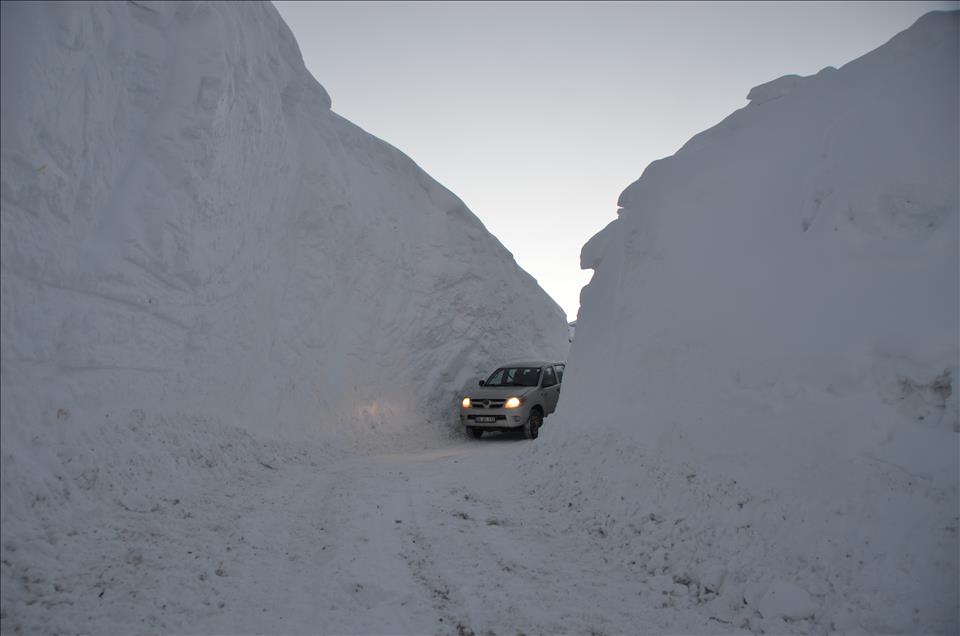 Hakkari'nin Yüksekova ilçesinde kar kalınlığının yer yer 3 metreyi bulduğu yüksek rakımlı köy ve yaylalarda yollar, karla mücadele ekiplerinin özverili çalışmasıyla ulaşıma açılıyor ( Ulaş Güven - Anadolu Ajansı )Ulaş Güven