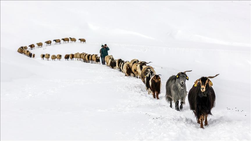Kar yağışının yaşamı olumsuz etkilediği Bitlis'te, 200 yerleşim birimine ulaşım sağlanamıyor. ( Şener Toktaş - Anadolu Ajansı )Şener Toktaş