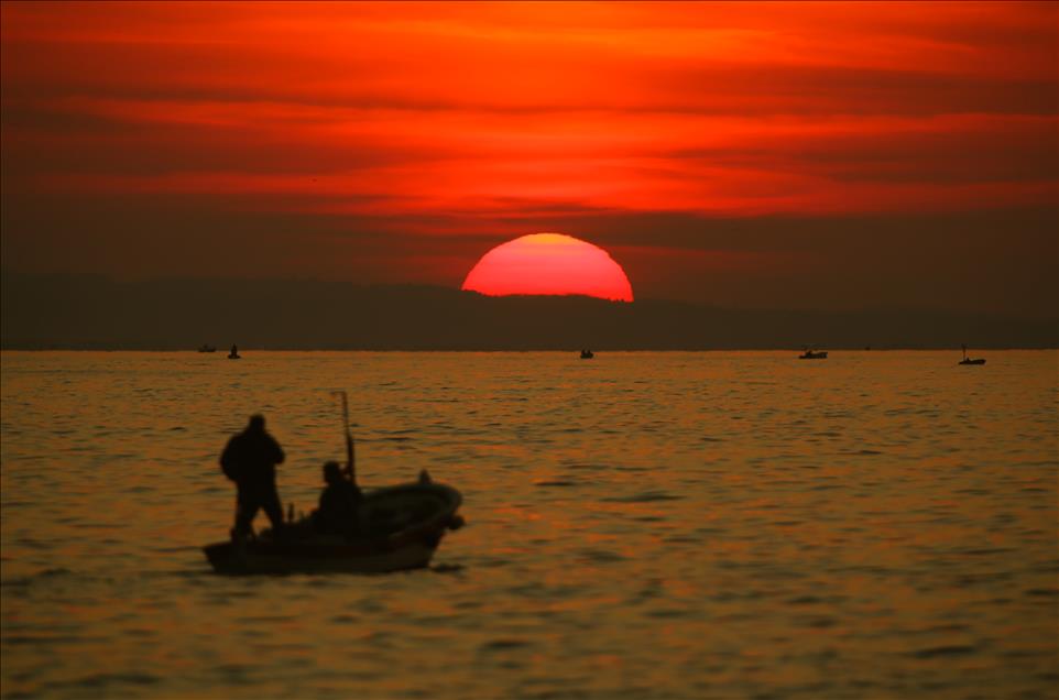 Düzce'nin Akçakoca ilçesi'nde gün batımı sırasında oluşan kızıllık ile bütünleşen Karadeniz, güzel görüntüler oluşturdu. ( Ömer Ürer - Anadolu Ajansı )Ömer Ürer