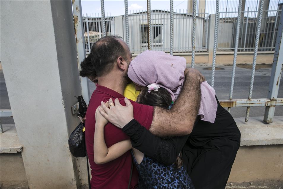 Elinde çiçeklerle beklediği eşi ve çocuklarına kavuştu