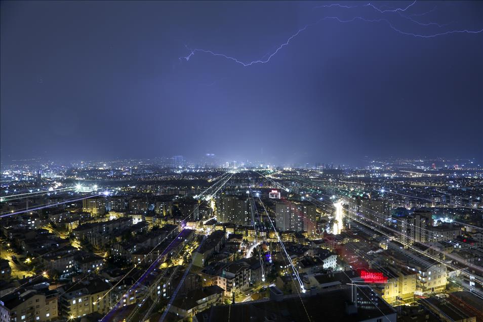 Ankara’da akşam saatlerinde başlayan yağış esnasında çakan şimşekler ve şehrin ışıkları güzel görüntüler ortaya çıkardı.