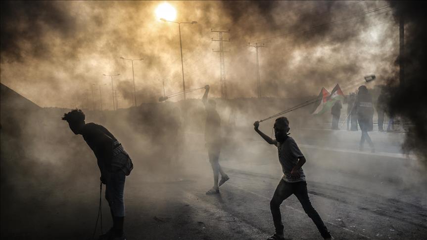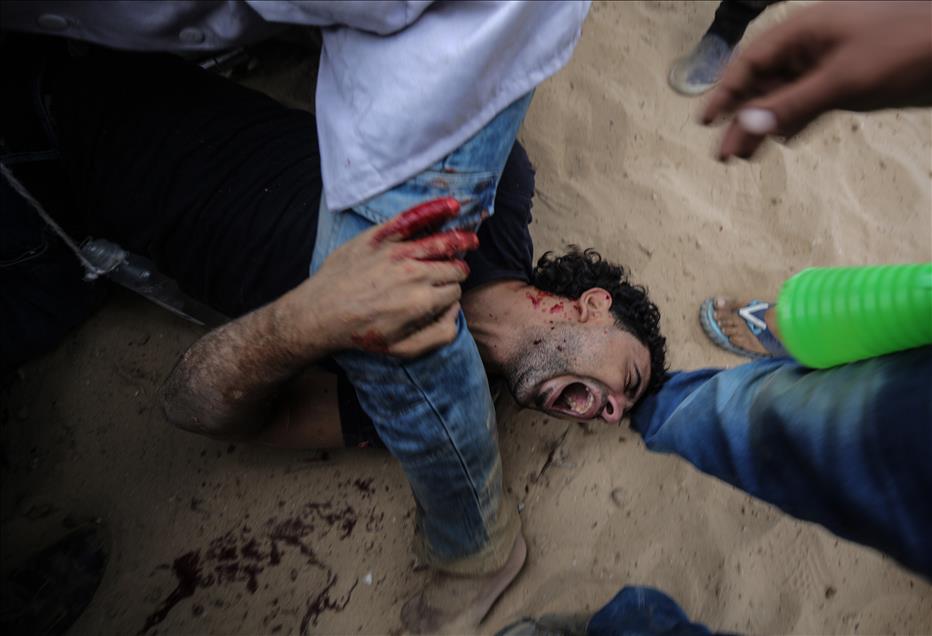 "Büyük Dönüş Yürüyüşü" kapsamında Gazze'nin kuzeybatısında bir araya gelen yüzlerce Filistinli, İsrail sınırı yakınlarında gösteri düzenledi. İsrail askerlerinin gösteriye müdahalesi sonucu bir Filistinli genç bacağından yaralandı. ( Ali Jadallah - Anadolu Ajansı )Ali Jadallah