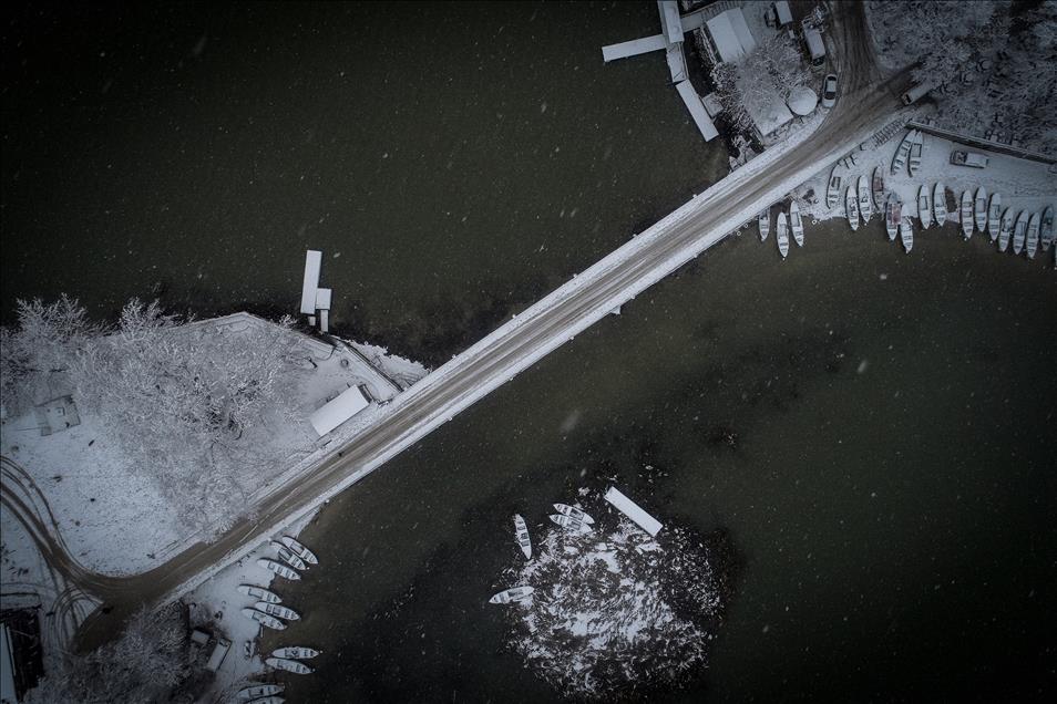 Avrupa'nın en güzel kasabaları arasında gösterilen, "Küçük Venedik" olarak nitelendirilen Uluabat Gölü'ne kıyı Gölyazı Mahallesi, kar yağışının ardından oluşan beyaz örtüsüyle farklı bir güzelliğe büründü. Yaklaşık 2 bin 600 yıl önce yaşamın başladığı ve Japon Seyahat Acentaları Birliği (JATA) tarafından "Avrupa'nın en güzel 30 kasabası" arasında gösterilen, yağışların fazla olduğu dönemlerde göl suyunun yükselip evlerin önüne kadar gelmesi dolayısıyla "Küçük Venedik" olarak nitelendirilen yarımada üzerine kurulu mahalle, ilkbahar ve yaz aylarında daha fazla ziyaretçi ağırlasa da kışın da beyaz örtüsüyle misafirlerini bekliyor. ( Sergen Sezgin - Anadolu Ajansı )Sergen Sezgin