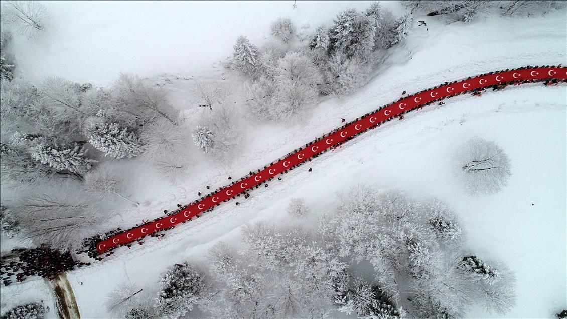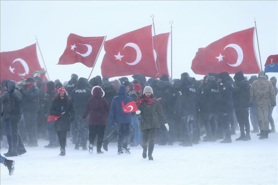Kars'ın Sarıkamış ilçesinde, Sarıkamış Harekatı'nın 104. yılı anma etkinlikleri çerçevesinde "Asımın Nesli Asrın Yürüyüşünde" temasıyla düzenlenen yürüyüş, Soğanlı ve Allahuekber Dağları arasındaki Kızılçubuk Zirvesi'nden başladı. ( Ahmet İzgi - Anadolu Ajansı )Ahmet İzgi