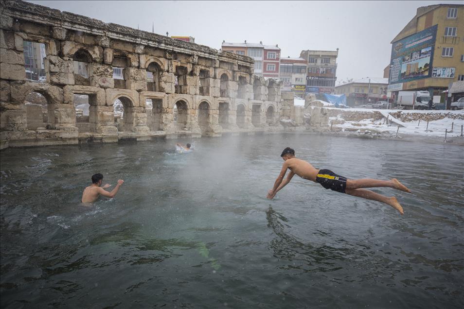 İki bin yıllık havuzda kar altında yüzme keyfi
