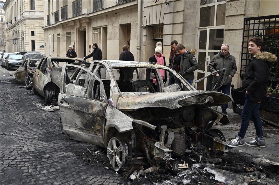 Fransa'nın başkenti Paris'te sarı yeleklilerin gösterilerinin sekizinci haftasında polisle eylemciler arasında zaman zaman gergin anlar yaşandı. Binlerce eylemci sabah saatlerinde Paris'in sembolleri arasında yer alan Champs-Elysees Caddesi'nde toplandı. Eylemler sırasında caddede ateşe verilen birçok araç kullanılamaz hale geldi. ( Mustafa Yalçın - Anadolu Ajansı )Mustafa Yalçın