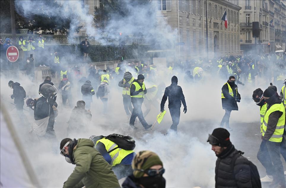 Fransa'da akaryakıt zamlarına tepki olarak başlayan, daha sonra hükümet karşıtı gösterilere dönüşen sarı yeleklilerin protestoları, başkent Paris'teki Orsay Müzesi yakınlarında devam etti. Güvenlik güçleri göstericilere müdahale etti. ( Mustafa Yalçın - Anadolu Ajansı )Mustafa Yalçın