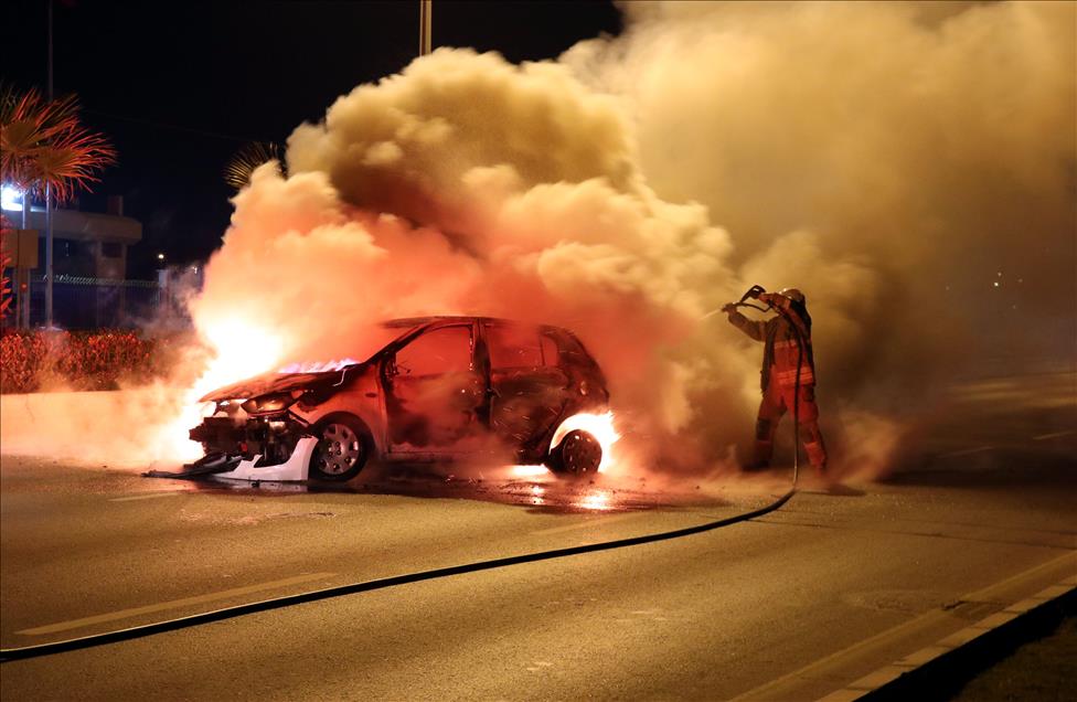 Balıkesir'den İzmir'e gezmeye gelen üniversite öğrencisi iki gencin bulunduğu otomobil, İzmir'in Konak ilçesinde seyir halindeyken henüz belirlenemeyen bir nedenle alev aldı. Olay yerine gelen polisler yolu trafiğe kapattı, itfaiye ekipleri de alevlere müdahale etti. ( Şafak Yel - Anadolu Ajansı )Şafak Yel