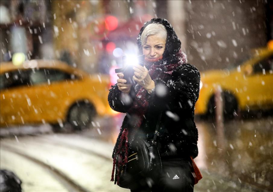 İstanbul'da akşam saatlerinde başlayan kar yağışı Taksim'de etkili oldu. ( Şebnem Coşkun - Anadolu Ajansı )Şebnem Coşkun