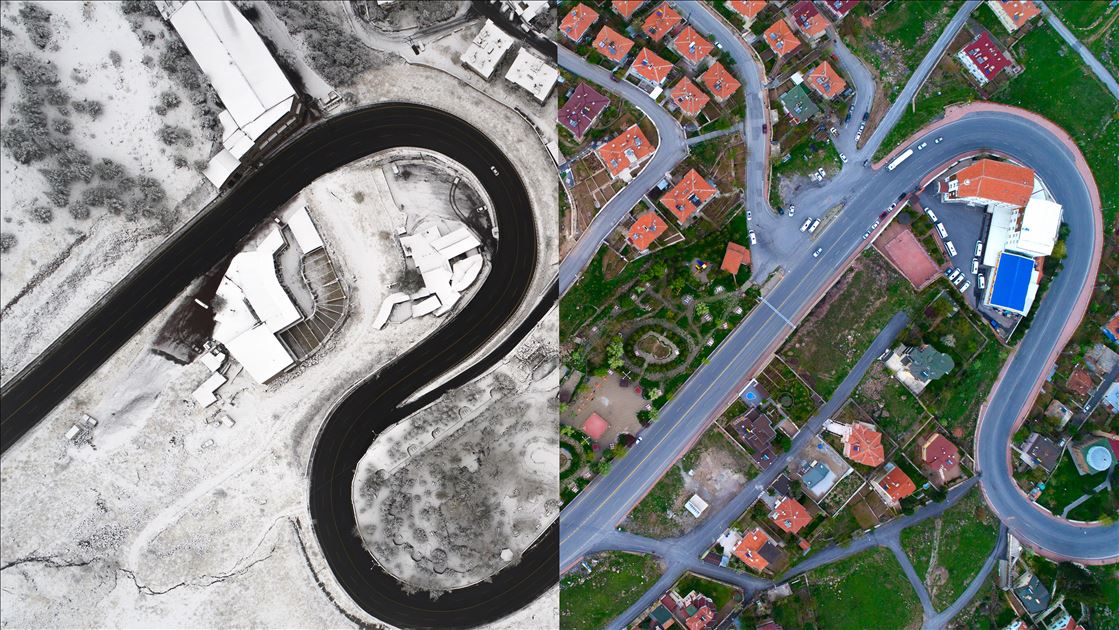 Türkiye'nin farklı coğrafyalarından Anadolu Ajansı (AA) foto muhabirlerince çekilen kuş bakışı fotoğraflarda hem kış hem de yaz mevsimi aynı karede yansıtıldı. Bir yarısı kar, diğer yarısı yemyeşil bahar ve yaz manzaralarından oluşan fotoğraflarda Türkiye'nin doğusundan batısına, kuzeyinden güneyine özellikle orman ve yollardaki mevsimsel değişiklikler göze çarpıyor. Ankara'daki Eymir Gölü ve çevresi de farklı mevsimlerdeki güzelliğiyle dikkat çekiyor. ( Mustafa Kamacı - Anadolu Ajansı )Mustafa Kamacı