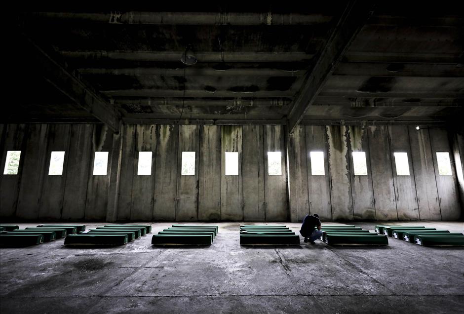 İkinci Dünya Savaşı'nın ardından Avrupa'da yaşanan en büyük insanlık trajedisi olarak nitelendirilen ve en az 8 bin 372 Boşnak sivilin katledildiği Srebrenitsa soykırımında öldürülen 35 kurbanın tabutları, yarın defnedilecekleri Potoçari Anıt Mezarlığı'na taşındı. Visoko şehrinden dün yola çıkan ve Potoçari'ye ulaşan yeşil çuhaya sarılı tabutlar, savaş sırasında Birleşmiş Milletler (BM) bünyesinde görev yapan Hollandalı askerlerin üs olarak kullandığı eski akümülatör fabrikasına yerleştirildi. Soykırımın 23. yılı nedeniyle yarın düzenlenecek anma töreni ve kılınacak cenaze namazının ardından kimlikleri tespit edilen 35 kurban Potoçari Anıt Mezarlığı'nda toprağa verilecek.