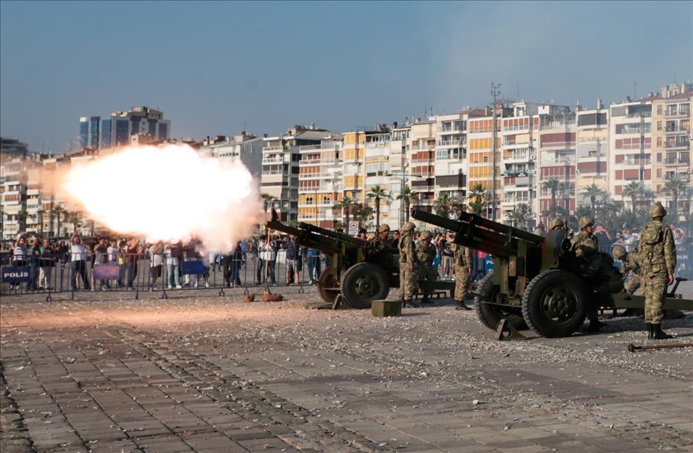 İzmir'de, Cumhurbaşkanı Recep Tayyip Erdoğan'ın yemin töreni dolayısıyla Cumhuriyet Meydanı'nda 57. Topçu Tugay Komutanlığı tarafından 101 pare top atışı gerçekleştirildi. ( Mahmut Serdar Alakuş - Anadolu Ajansı )Mahmut Serdar Alakuş