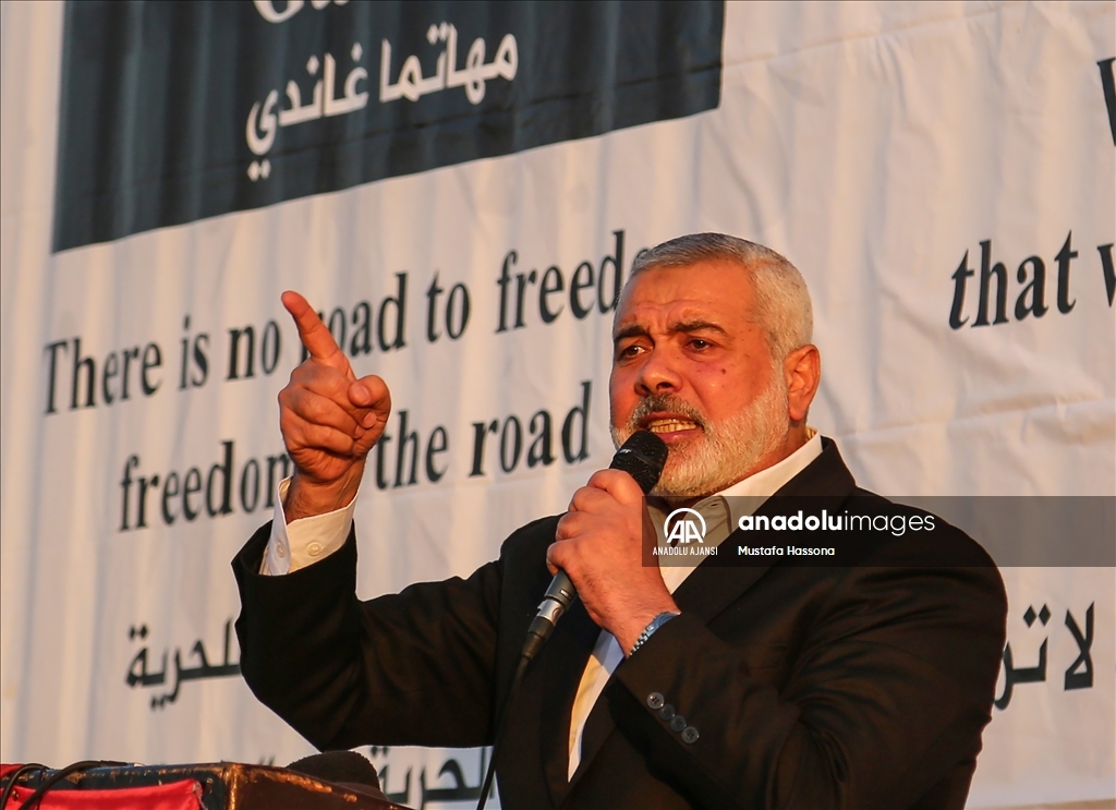 Hamas'ın Gazze kentinde düzenlediği festivale katılan Hamas Siyasi Büro Başkan Yardımcısı İsmail Heniye, konuşma yapmıştı. (Ali Jadallah - Anadolu Ajansı)Ali Jadallah