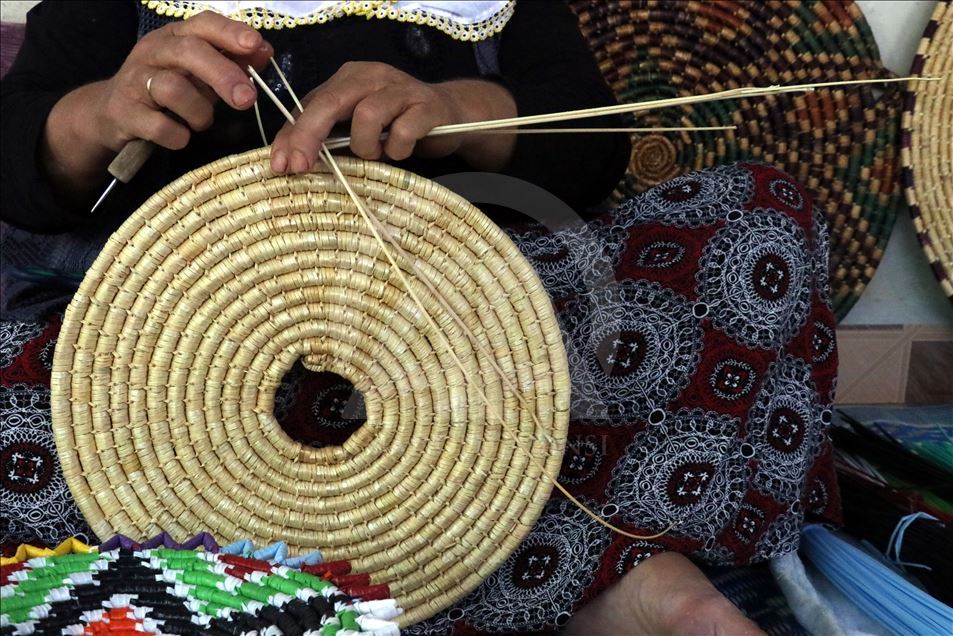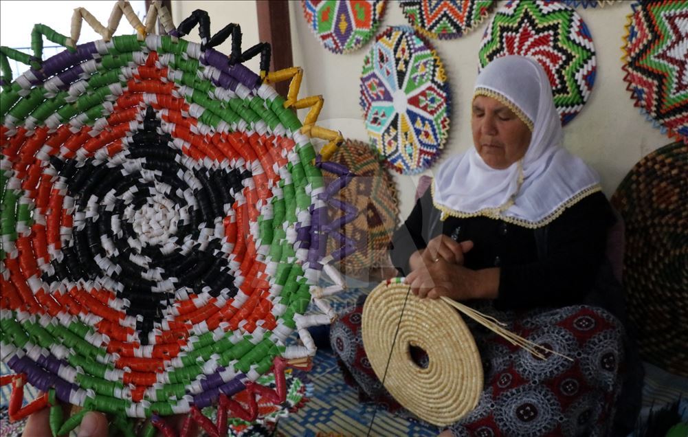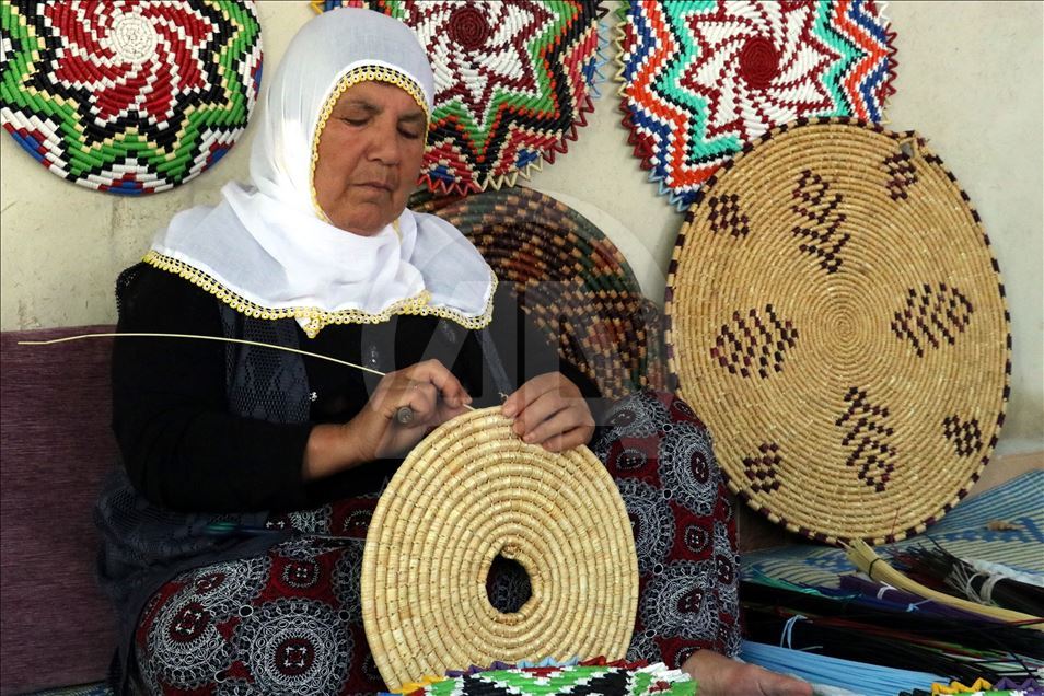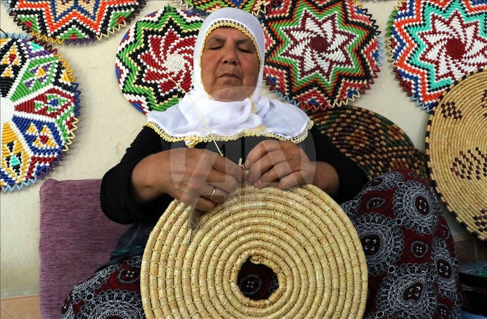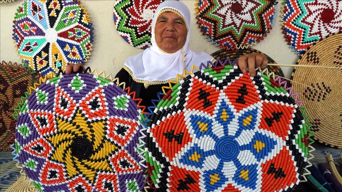 Hatay'da bir zamanlar genç kızların çeyizinin olmazsa olmazları arasında yer alan hasır süslemesi el sanatı ürünler, 65 yaşındaki Fatma Palaoğlu'nun elinde şekilleniyor. Çocukluk yaşlarda öğrendiği hasır örgüden ev eşyası ve süsü yapmayı ilerlemiş yaşına rağmen sürdüren Palaoğlu, eline aldığı iğneyle künefe tepsisi, şekerlik, bulgur eleme kabı ve çeşitli duvar süsleri yapıyor.