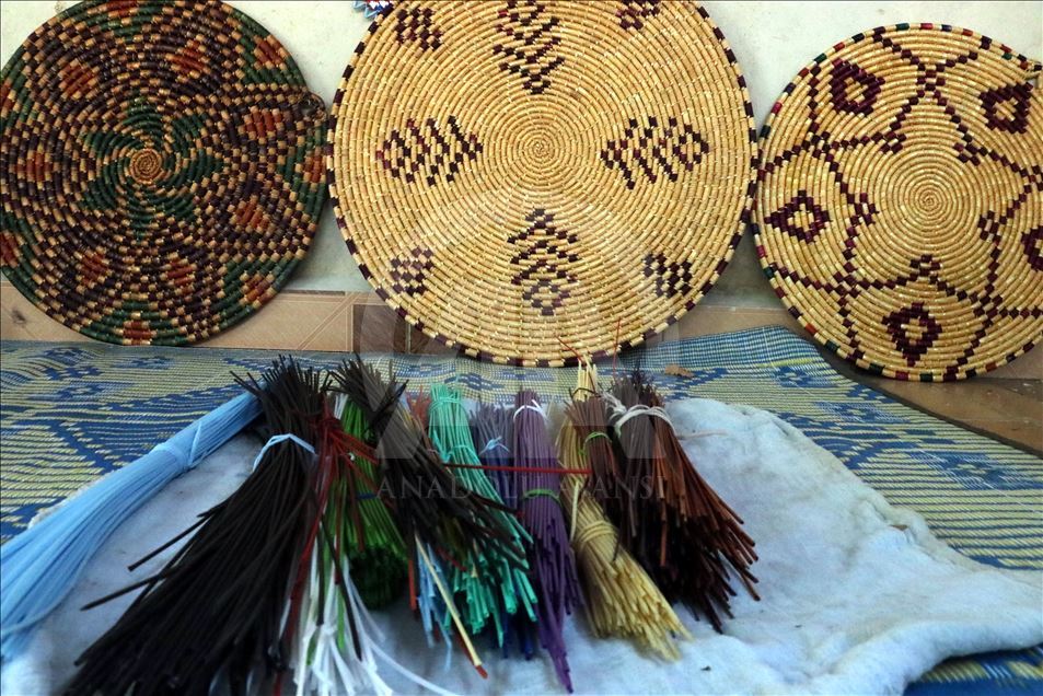 Hasır örgüler Fatma ninenin elinde şekilleniyor
