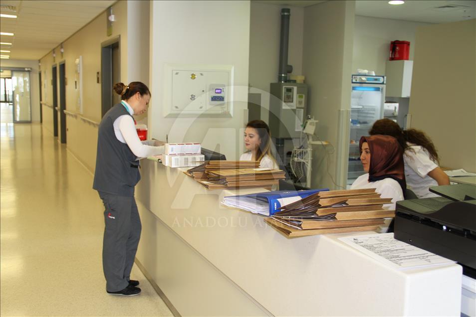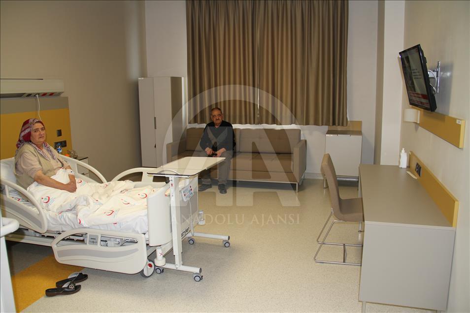 Otel konforunda hizmet sunulan Yozgat Şehit Hastanesinde hastalar, banyosu, tuvaleti, refakatçi koltuğu ve televizyon bulunan odalarda kalırken kendilerini adeta evlerinde hissediyor.