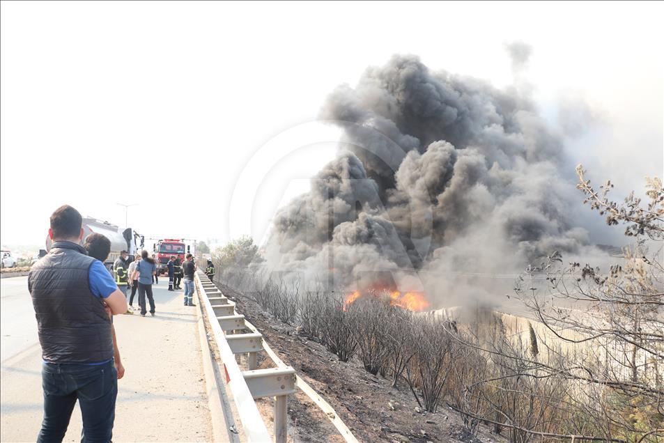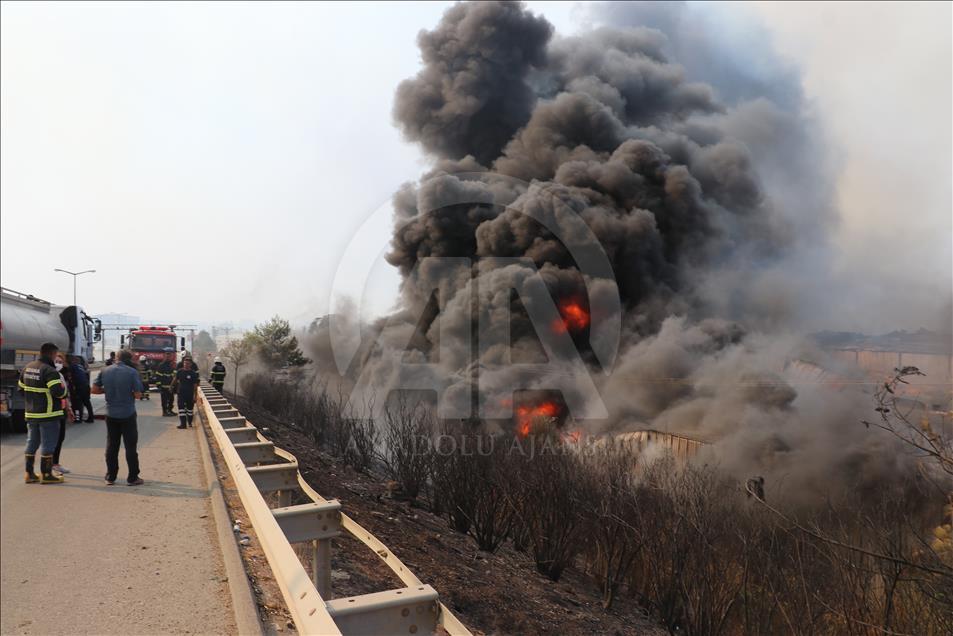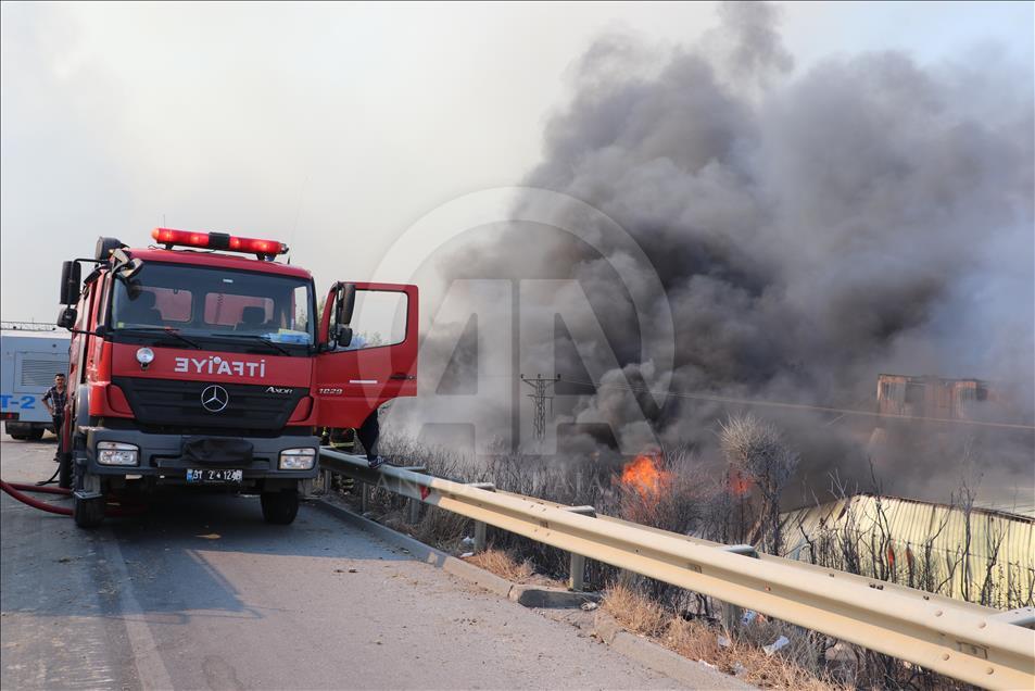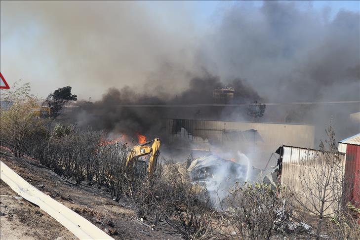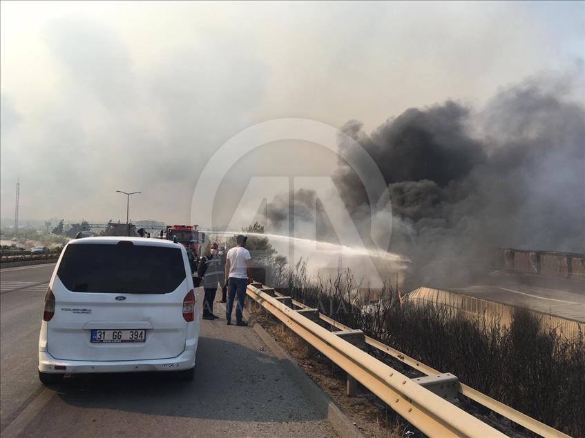 Hatay'ın Belen ilçesinde çıkan ve İskenderun ilçesindeki 2 mahalleye de sıçrayan orman yangınına havadan ve karadan müdahale ediliyor. Yangın bir antrepo sahasına da sıçradı. ( Salim Taş - Anadolu Ajansı )Salim Taş