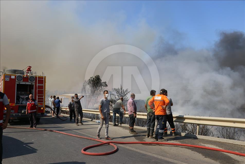 Hatay'ın Belen ilçesinde çıkan ve İskenderun ilçesindeki iki mahalleye de sıçrayan orman yangınına havadan ve karadan müdahale ediliyor. Alevler, İskenderun ilçesindeki Şekere ve İsmet İnönü mahalleleri ile bir antrepo sahasına sıçradı. ( Burak Milli - Anadolu Ajansı )Burak Milli