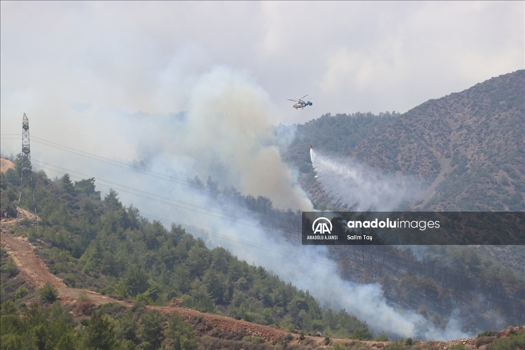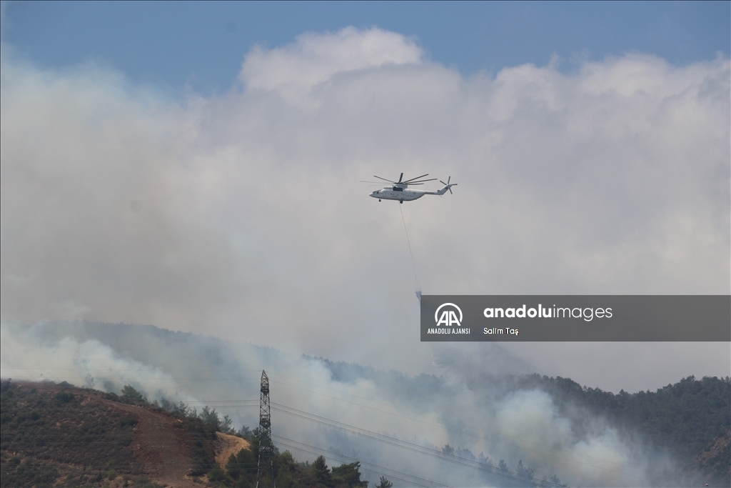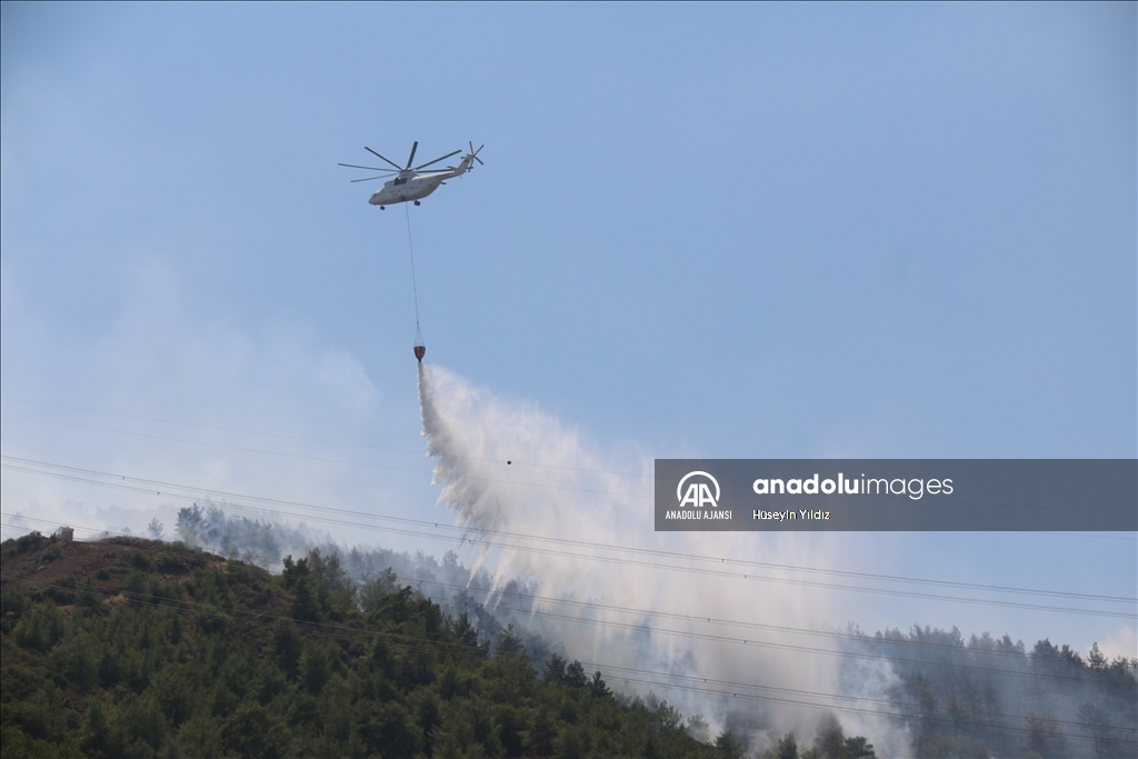 Hatay'ın merkez Antakya ilçesinde çıkan orman yangınına havadan ve karadan müdahale ediliyor. ( Hüseyin Yıldız - Anadolu Ajansı )Hüseyin Yıldız