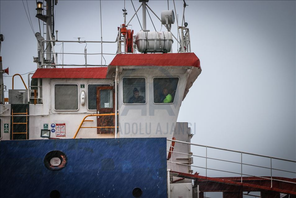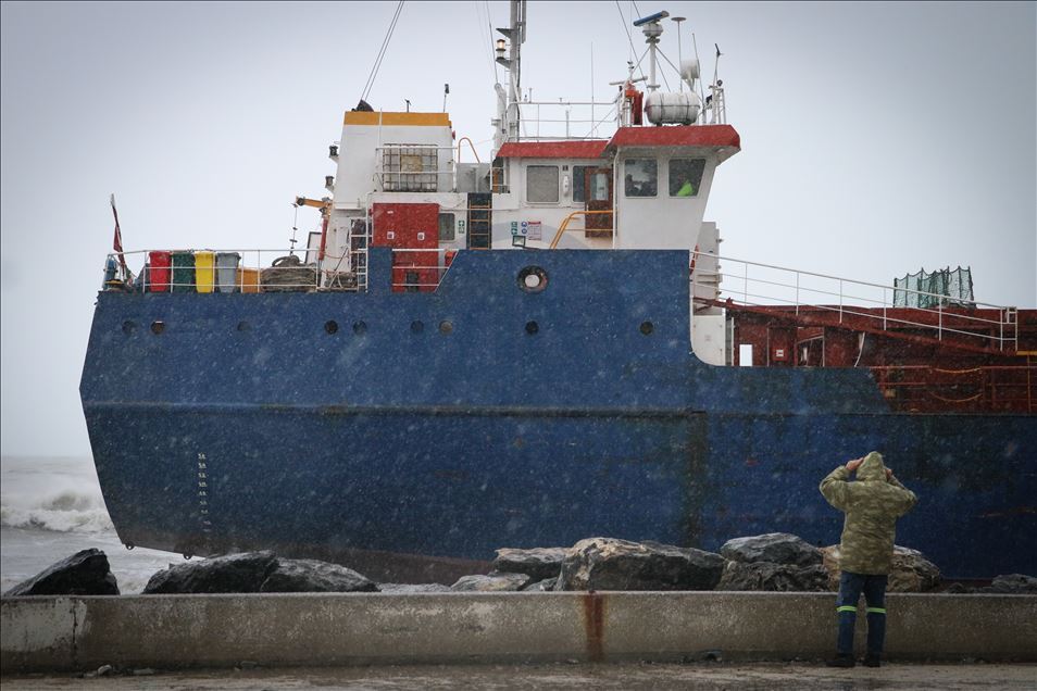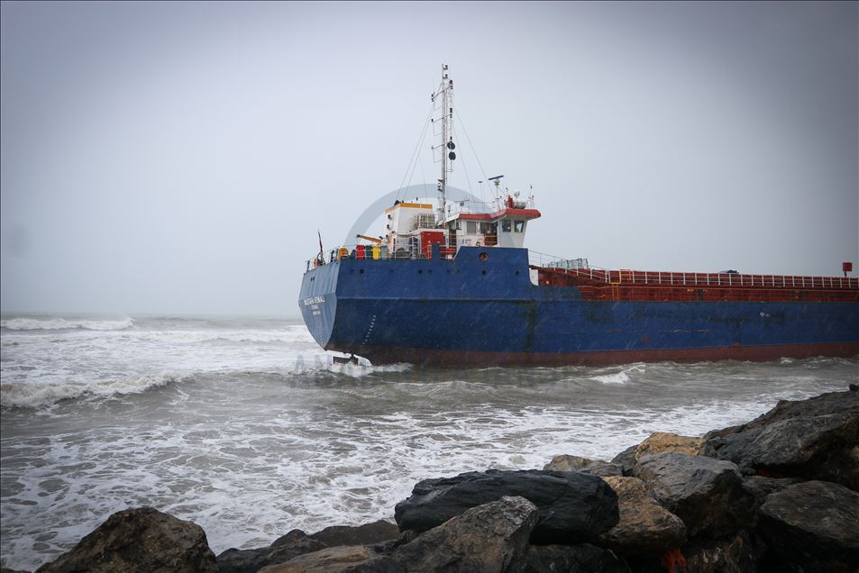 Hatay'ın Dörtyol ilçesi açıklarında demirli kargo gemisi fırtınada sürüklenerek karaya oturdu. Geminin kurtarılması için fırtına ve sağanağın dinmesinin beklendiği bildirildi. ( Burak Milli - Anadolu Ajansı )Burak Milli