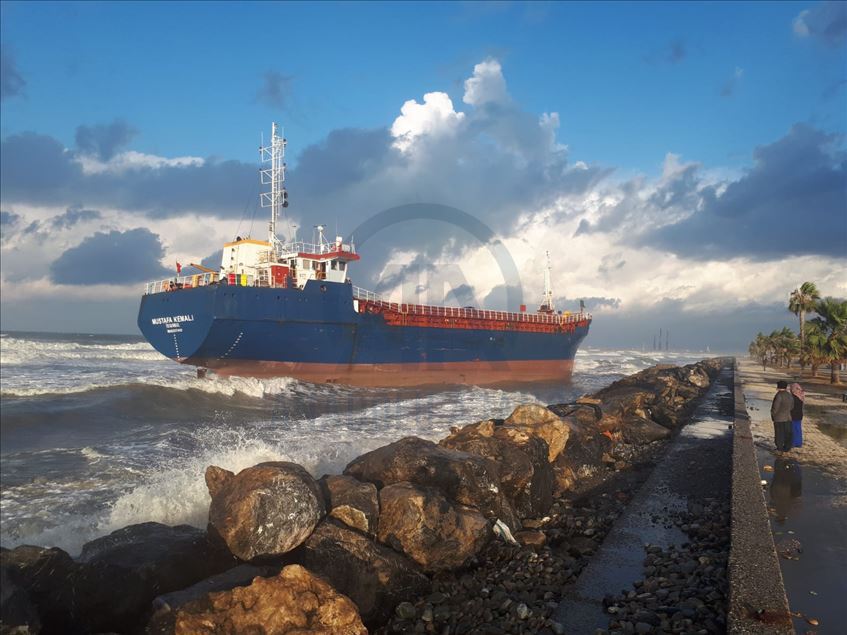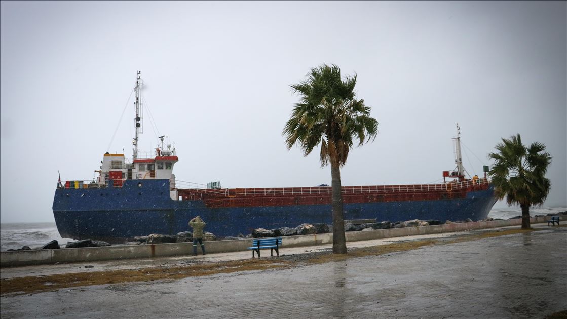Hatay'ın Dörtyol ilçesi açıklarında demirli kargo gemisi fırtınada sürüklenerek karaya oturdu. Geminin kurtarılması için fırtına ve sağanağın dinmesinin beklendiği bildirildi.