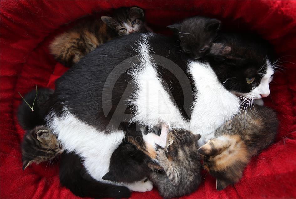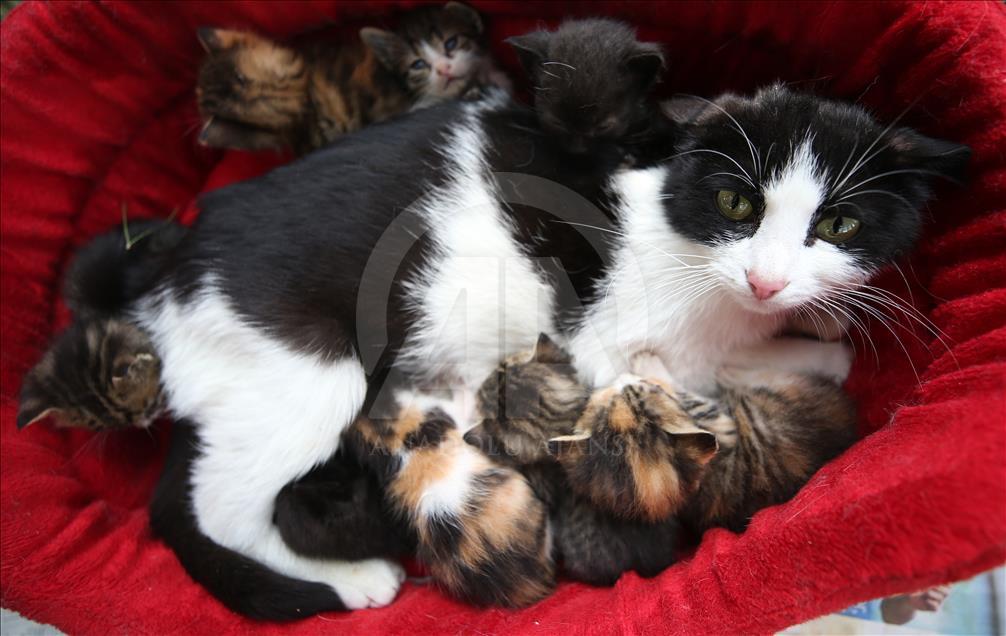 Hayatta kalmayı ve güçlü olmayı öğreten anne ile yavruları arasındaki karşılıksız ve sınırsız sevgiyi de içeren tarifsiz duygu, hayvanlar aleminde de benzer içgüdüler ve ilişkilerle kendini gösteriyor. Fotoğrafta kedi ve yavruları görülüyor. ( Ali Atmaca - Anadolu Ajansı )Ali Atmaca