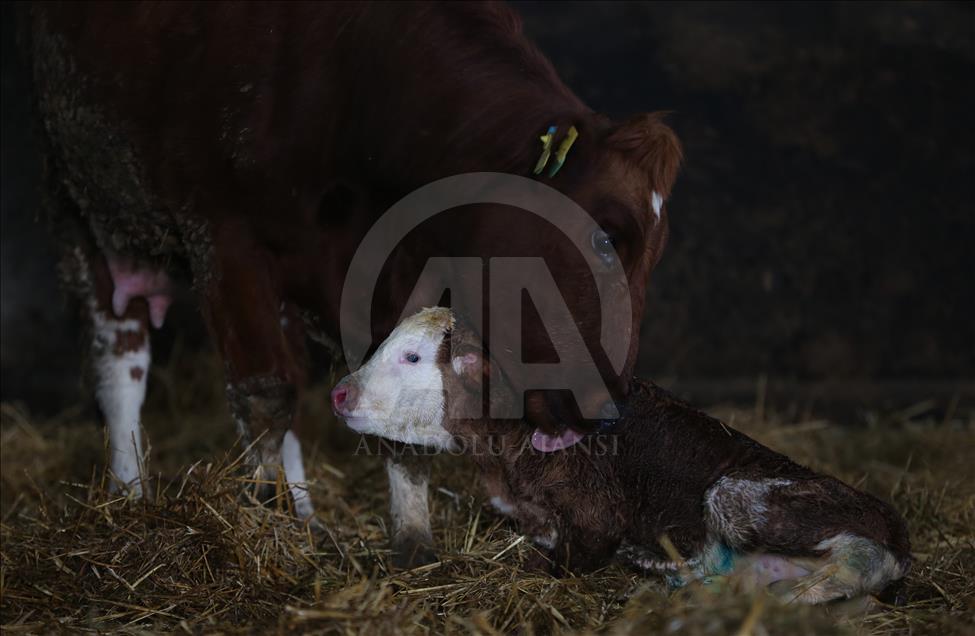 Hayatta kalmayı ve güçlü olmayı öğreten anne ile yavruları arasındaki karşılıksız ve sınırsız sevgiyi de içeren tarifsiz duygu, hayvanlar aleminde de benzer içgüdüler ve ilişkilerle kendini gösteriyor. Fotoğrafta inek ve yavrusu görülüyor. ( Ali Atmaca - Anadolu Ajansı )Ali Atmaca