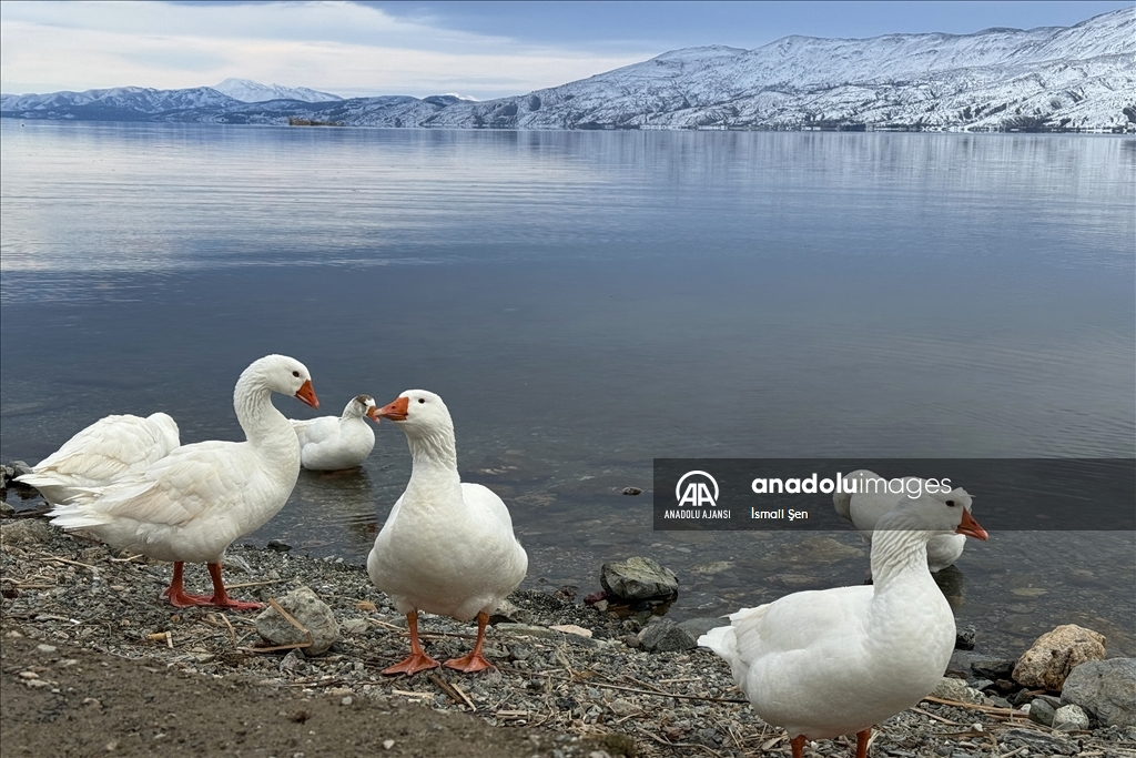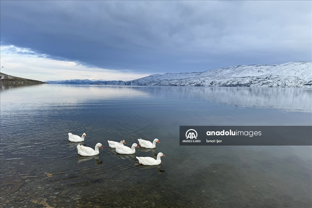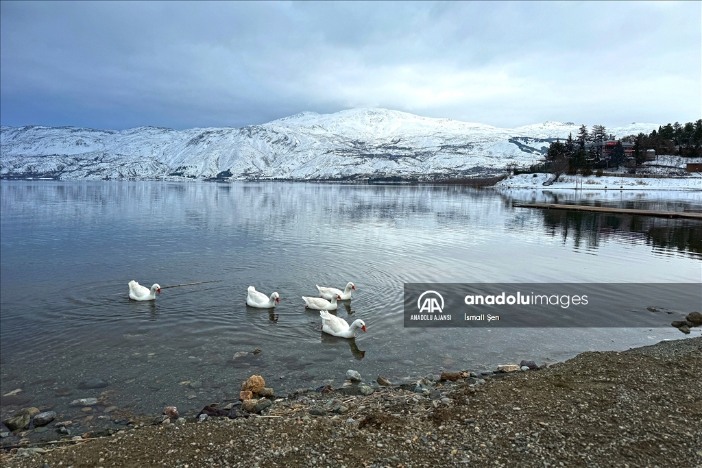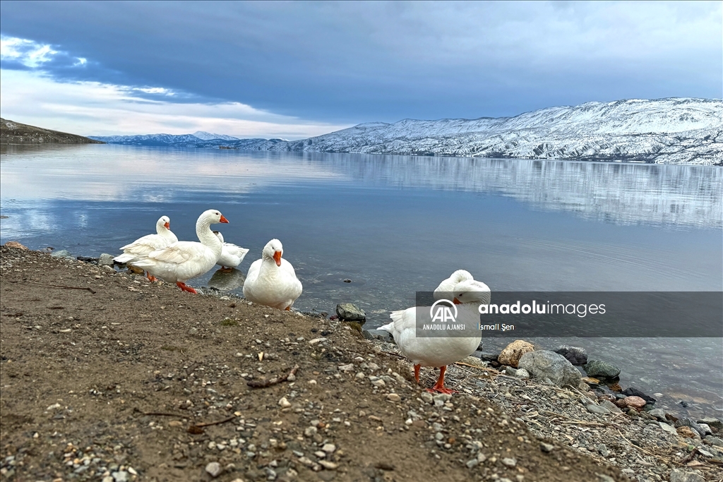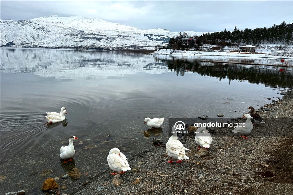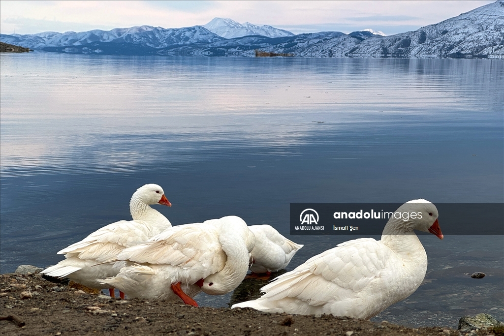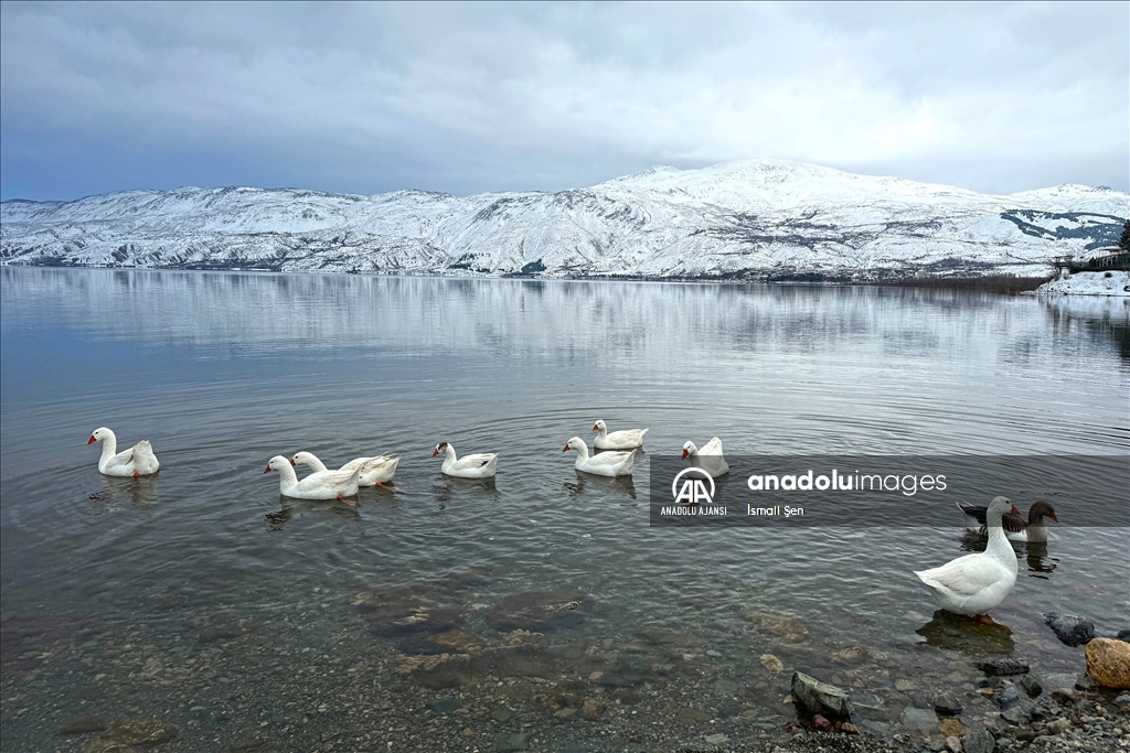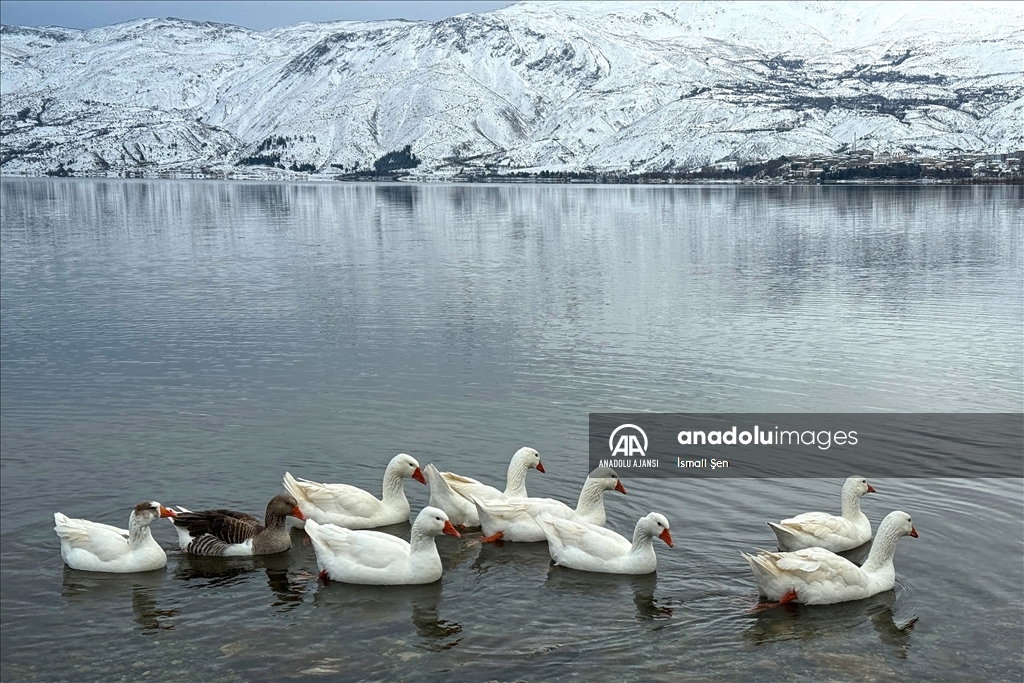 Elazığ'ın Sivrice ilçesinde 2 bin 300 rakımlı Hazarbaba Dağı,ve kuzeyinde yer alan Hazar Gölü, doğal güzelliği ile her mevsim farklı manzaralar sunuyor. Karla kaplı dağ ve kazların yüzdüğü Hazar Gölü, güzel görüntü oluşturdu. ( İsmail Şen - Anadolu Ajansı )İsmail Şen