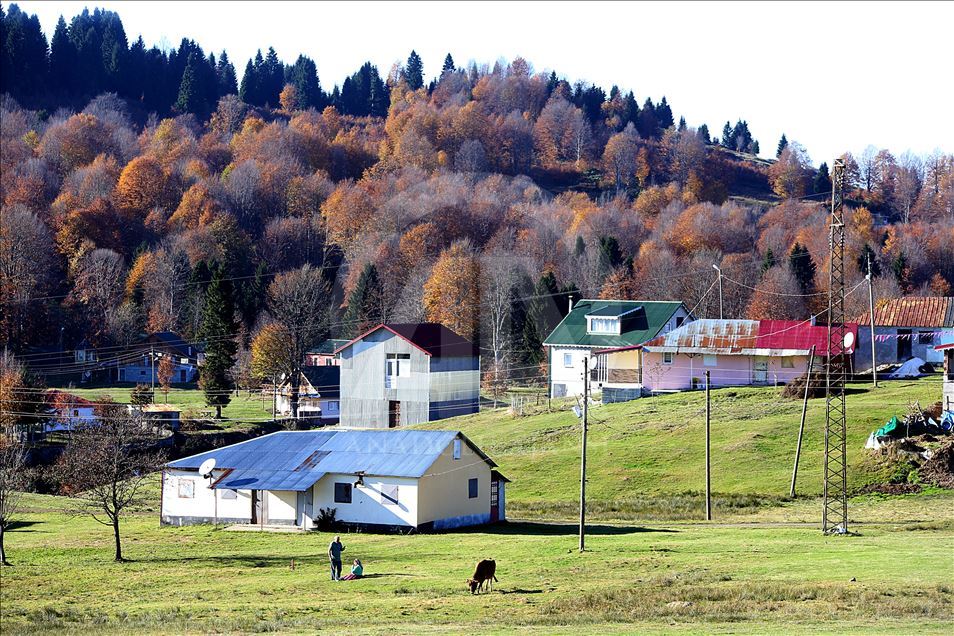 Trabzon'a en yakın yayla konumundaki Akçaabat ilçesinin bin 600 rakımlı Hıdırnebi Yaylası, sonbaharın gelişiyle ziyaretçilerine güzel görüntüler sunuyor. ( Hakan Burak Altunöz - Anadolu Ajansı )Hakan Burak Altunöz
