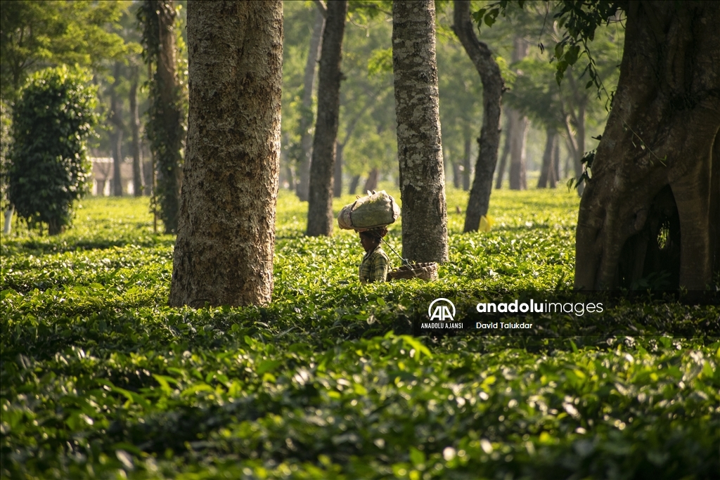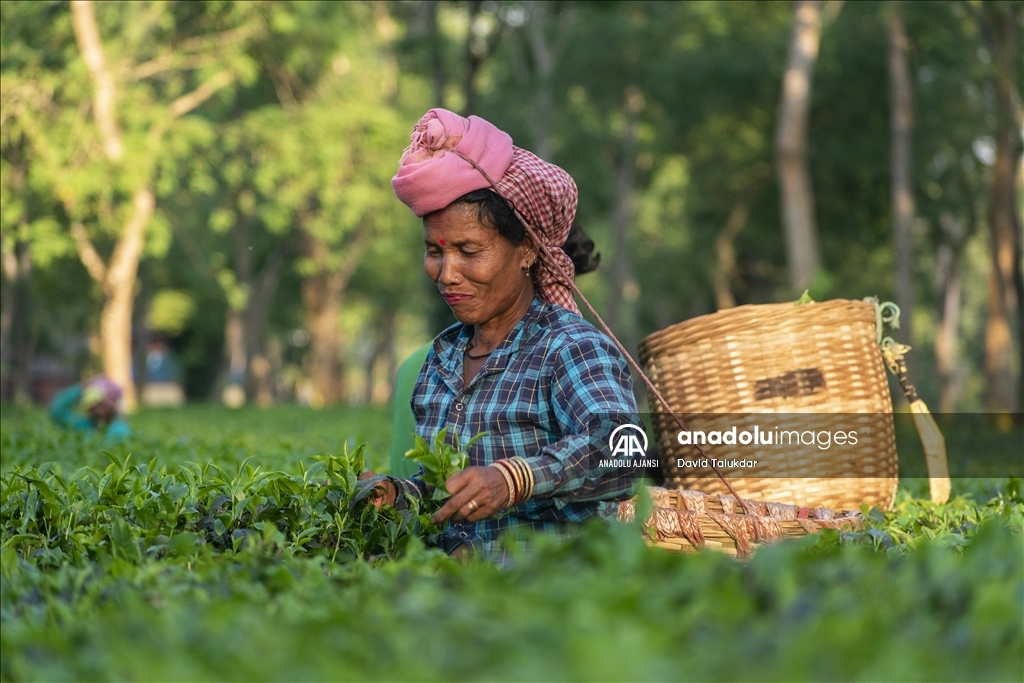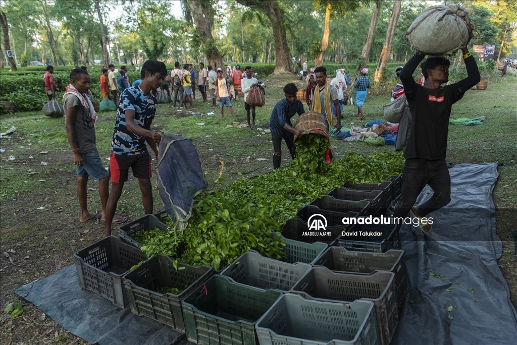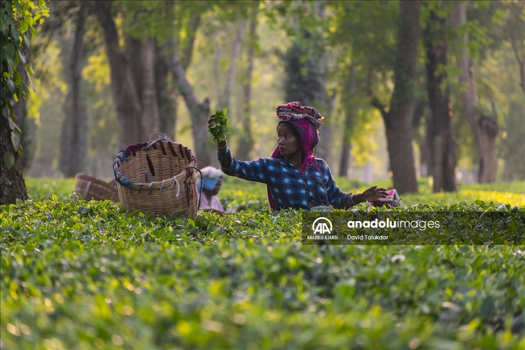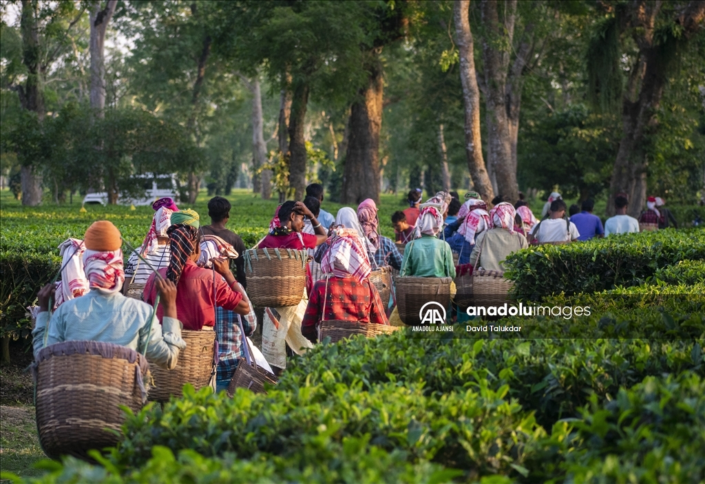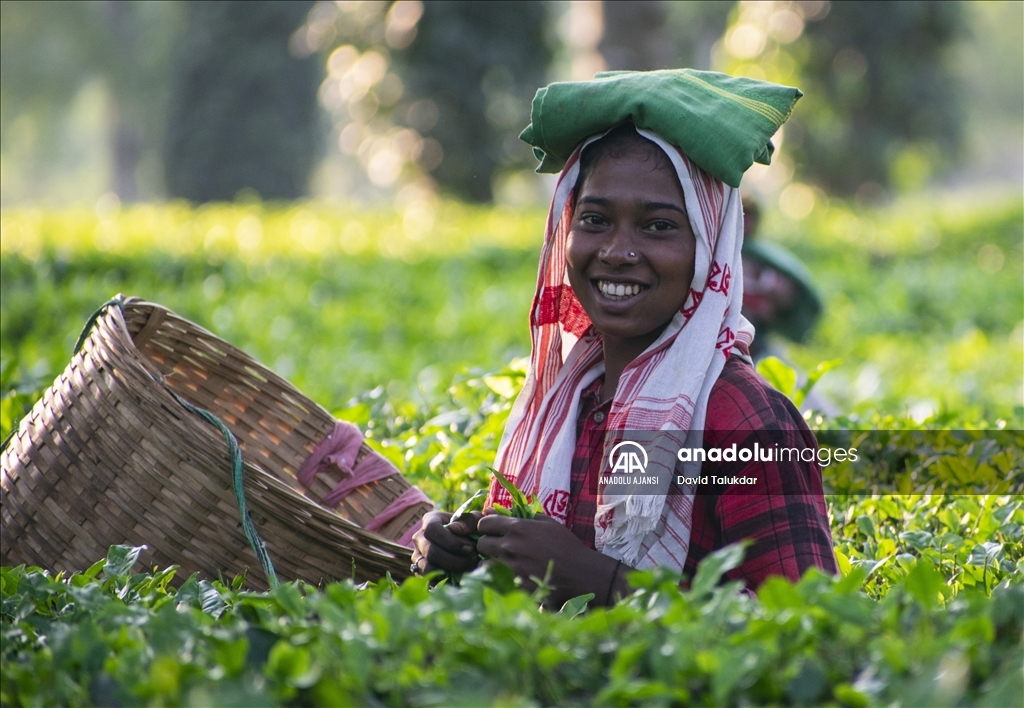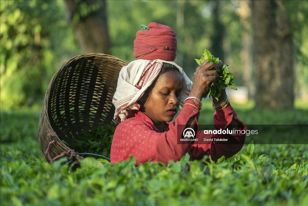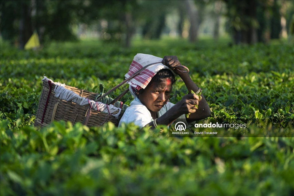 Hindistan'ın Bokakhat kentindeki işçiler, hasat döneminde çay yaprağı toplayarak geçimlerini sağlıyor. Assam bölgesinde yaklaşık 850 çay bahçesinde çalışan bir milyona yakın işçi, Hindistan'daki toplam çay üretiminin %50'den fazlasına katkı sağlıyor. ( David Talukdar - Anadolu Ajansı )David Talukdar