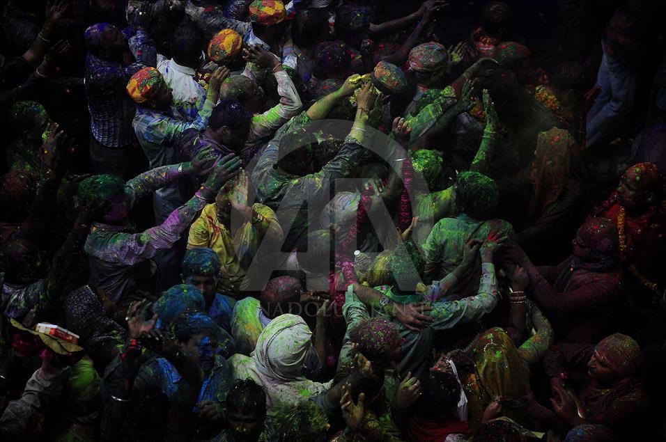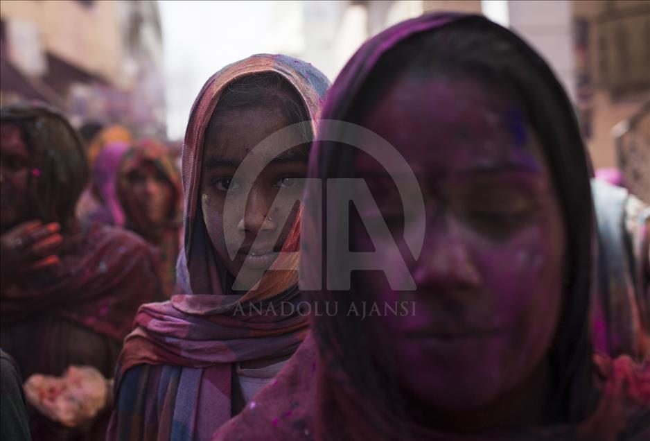 Hindistan'da renklerin festivali olarak bilenen Holi festivali başkent Yeni Delhi'ye yaklaşık 120 km uzaklıkta bulunan Vrindavan'da kutlandı. Kentteki Banke Bihari Tapınağı'na gelen binlerce Hindu Holi festivalini kutladı. ( Özge Elif Kızıl - Anadolu Ajansı )Özge Elif Kızıl