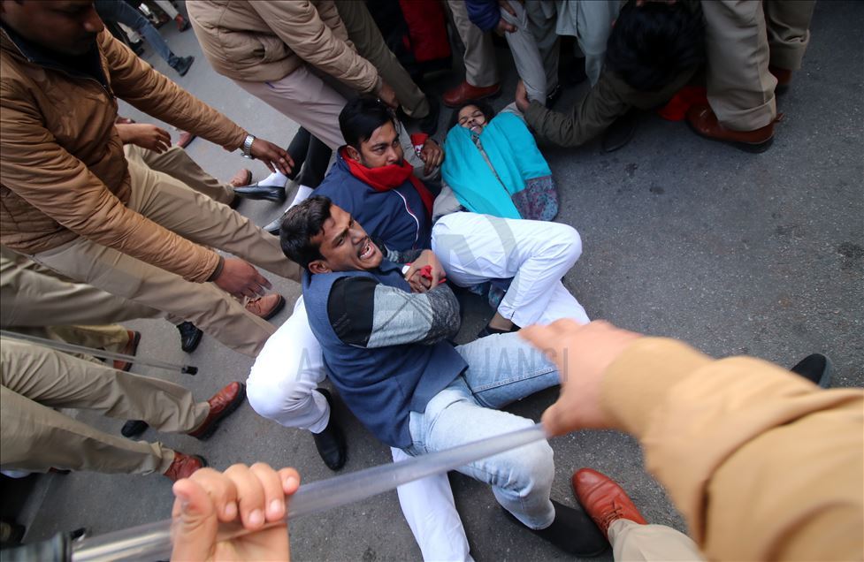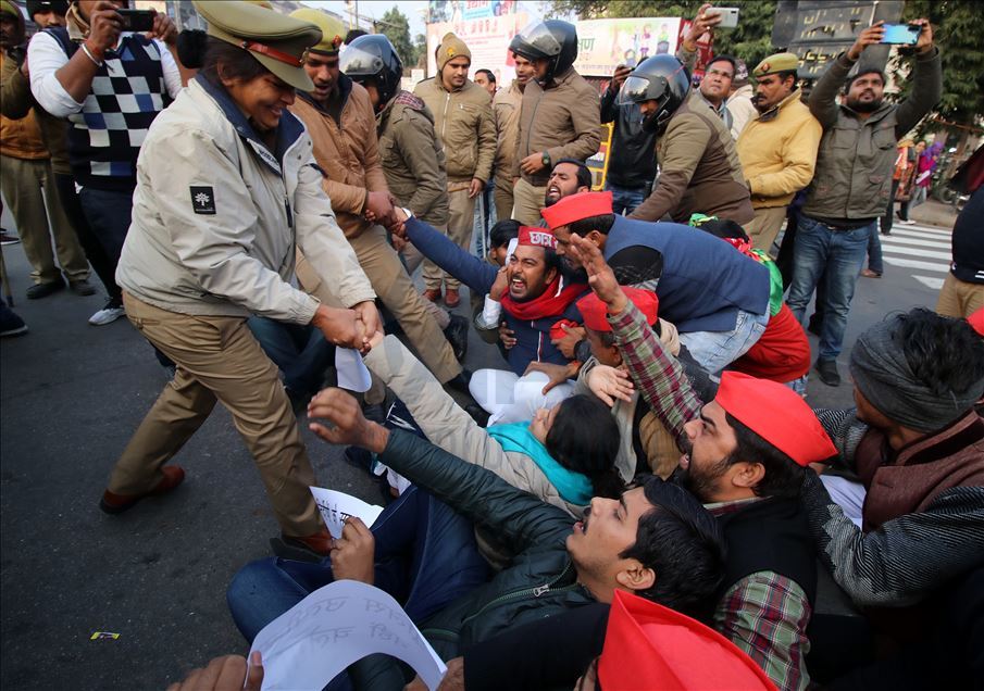 Hindistan'ın Uttar Pradesh eyaletinin Lucknow kentinde bir araya gelen çok sayıda gösterici, Pakistan, Afganistan ve Bangladeş'ten gelen 6 dini gruba vatandaşlık yolunu açan ancak aynı durumdaki Müslüman göçmenleri kapsam dışı bırakacak şekilde değiştirilen Vatandaşlık Yasası'na karşı ve gösteriler sırasında tutuklananlara destek için protesto gösterisi düzenledi. Güvenlik güçleri, bazı göstericileri gözaltına aldı. ( Sumit Kumar - Anadolu Ajansı )Sumit Kumar