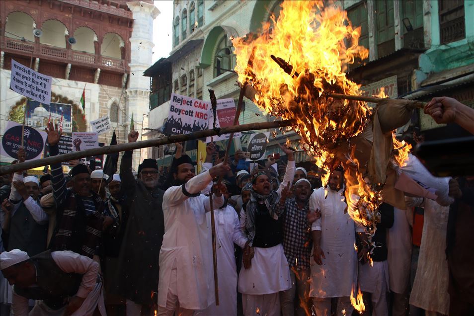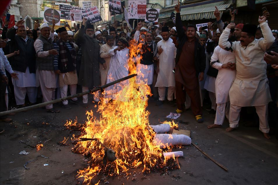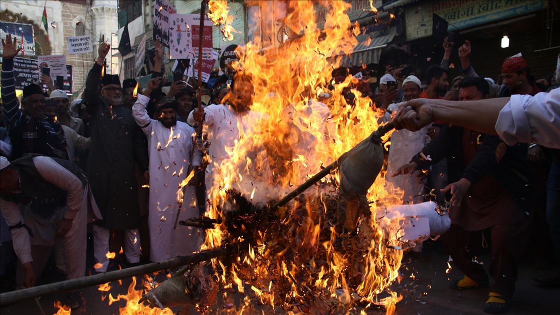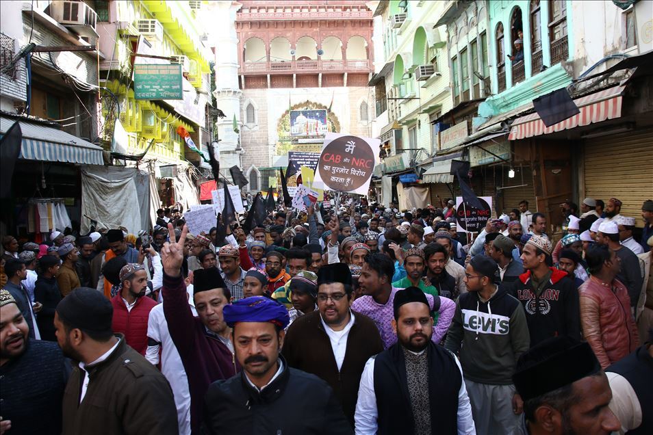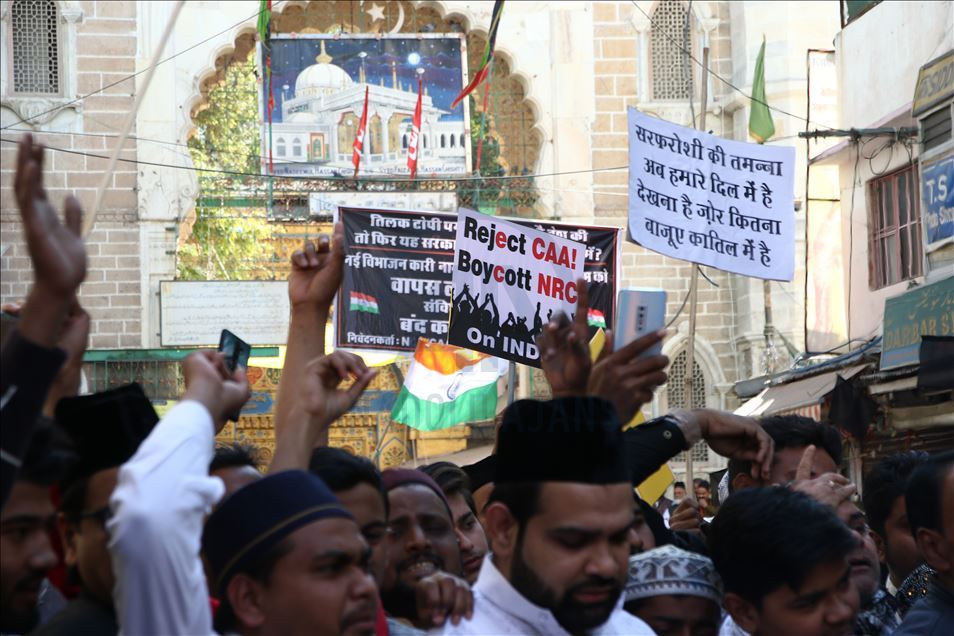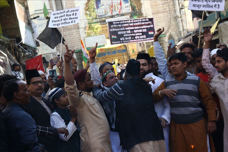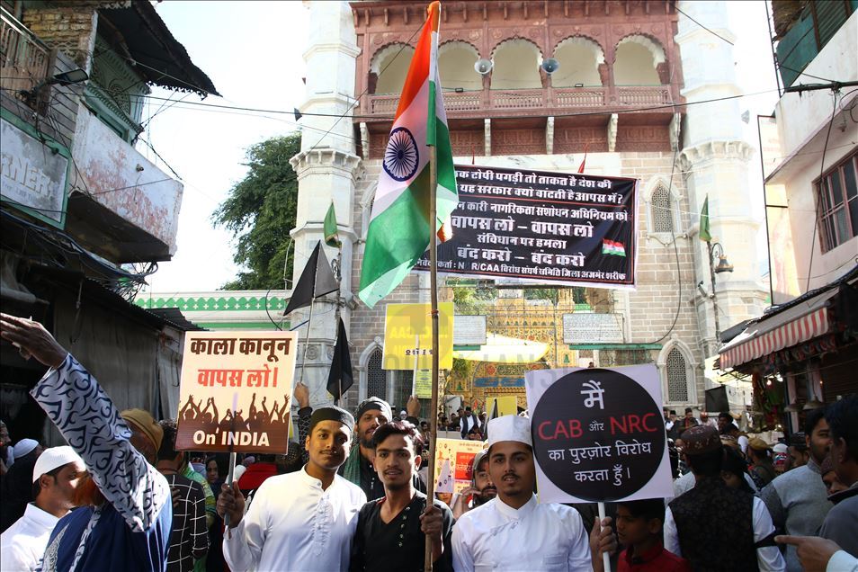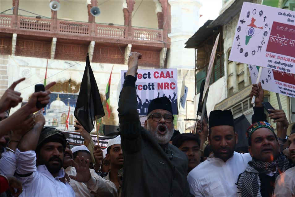 Hindistan'da Pakistan, Afganistan ve Bangladeş'ten gelen 6 dini gruba vatandaşlık yolunu açan ancak aynı durumdaki Müslüman göçmenleri kapsam dışı bırakacak şekilde değiştirilen Vatandaşlık Yasası'na karşı gösteriler devam ediyor. Ajmer kentinde de bir araya gelen göstericiler, yasa değişikliğini protesto etti. ( Sourabh Vyas - Anadolu Ajansı )Sourabh Vyas