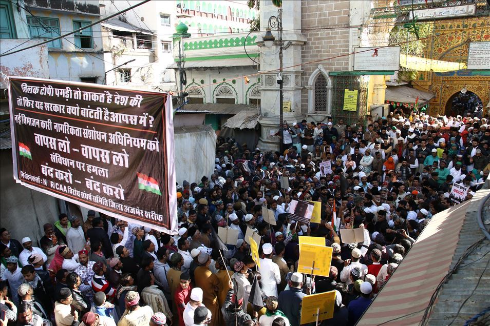 Hindistan'da Pakistan, Afganistan ve Bangladeş'ten gelen 6 dini gruba vatandaşlık yolunu açan ancak aynı durumdaki Müslüman göçmenleri kapsam dışı bırakacak şekilde değiştirilen Vatandaşlık Yasası'na karşı gösteriler devam ediyor. Ajmer kentinde de bir araya gelen göstericiler, yasa değişikliğini protesto etti. Hindistan polisi, gösteriler sırasında güvenlik önlemi aldı. ( Sourabh Vyas - Anadolu Ajansı )Sourabh Vyas