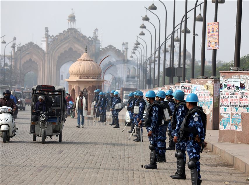 Hindistan'da Pakistan, Afganistan ve Bangladeş'ten gelen 6 dini gruba vatandaşlık yolunu açan ancak aynı durumdaki Müslüman göçmenleri kapsam dışı bırakacak şekilde değiştirilen Vatandaşlık Yasası'na karşı gösteriler devam ediyor. Lucknow kentinde acil müdahale güçleri, Cuma namazı sırasında Teele Veli Camisi etrafında güvenlik önlemi aldı. ( Sumit Kumar - Anadolu Ajansı )Sumit Kumar