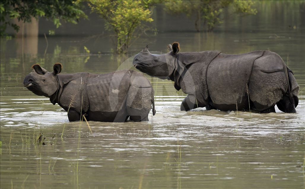 (Sadece Türkiye içinde kullanılabilir) Hindistan'ın doğu ve kuzeydoğusunda son birkaç gündür etkili olan şiddetli yağışların yol açtığı sellerde en az 45 kişi hayatını kaybetti. Assam'da yer alan Kaziranga Ulusal Parkı'nın yüzde 90'dan fazlası sular altında kalırken, en az 23 hayvanın telef olduğu aktarıldı. ( Astudestra Ajengrastrı /EPA - Anadolu Ajansı )Astudestra Ajengrastrı /EPA