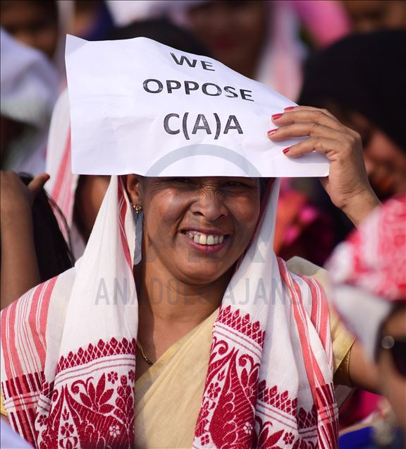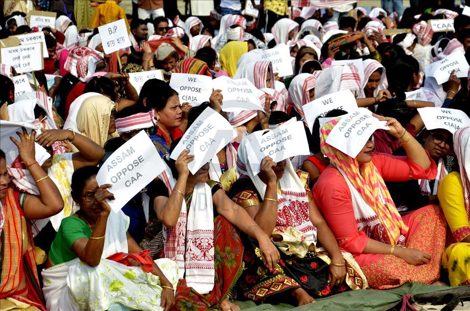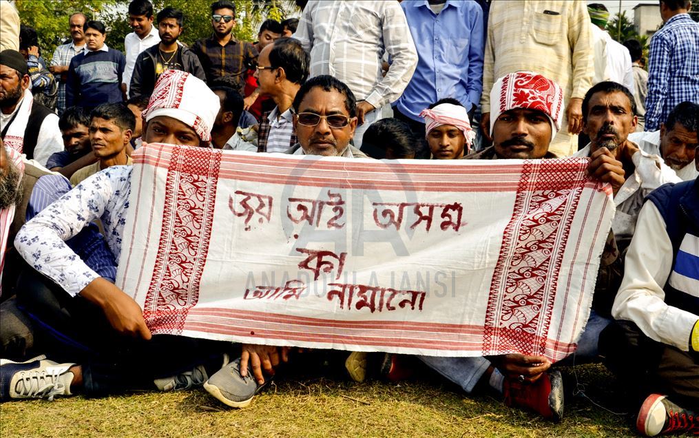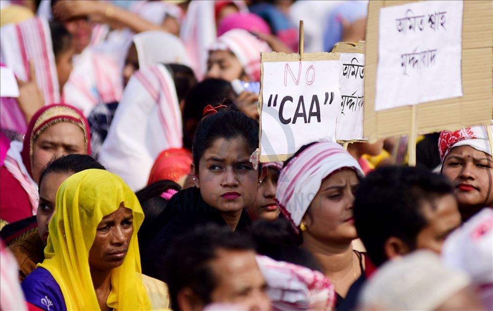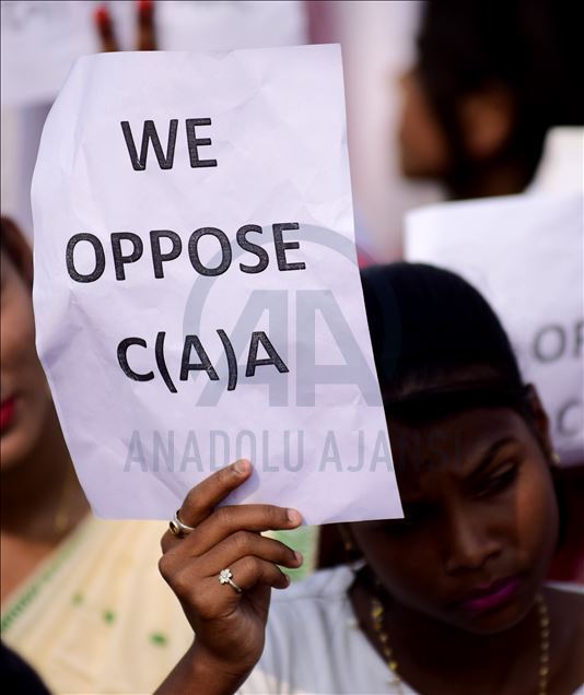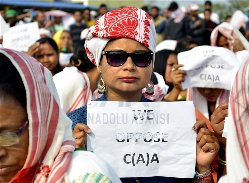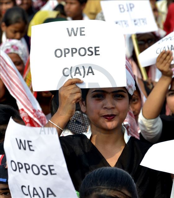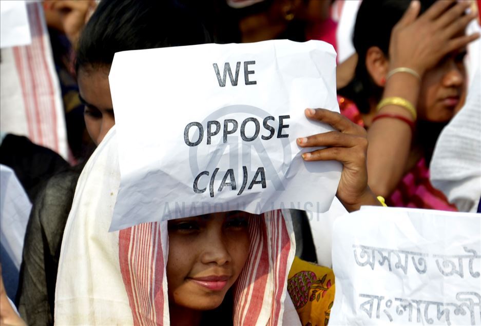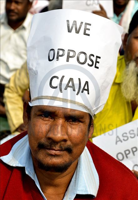 Hindistan'ın Guwahati kentinde toplanan göstericiler, ülkede Pakistan, Afganistan ve Bangladeş'ten gelen 6 dini gruba vatandaşlık yolunu açan ancak aynı durumdaki Müslüman göçmenleri kapsam dışı bırakan Vatandaşlık Yasası'na karşı protesto düzenledi. ( Hafiz Ahmed - Anadolu Ajansı )Hafiz Ahmed
