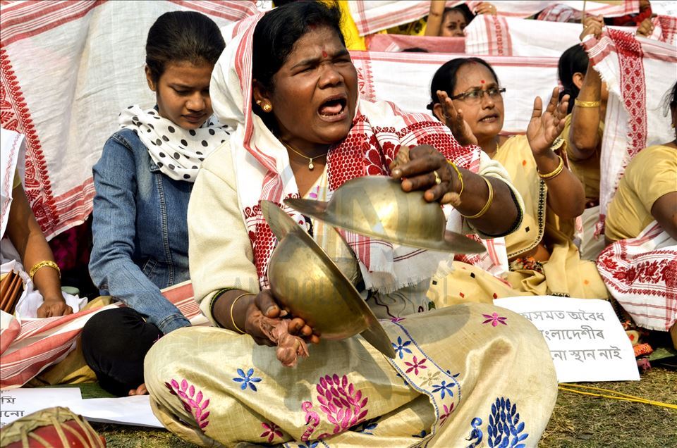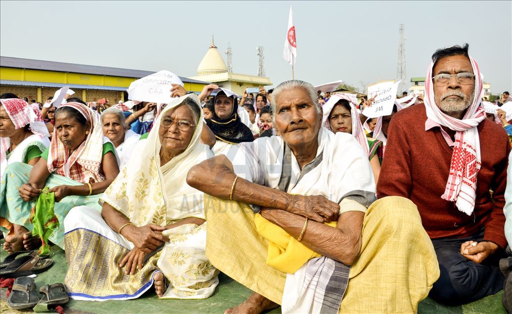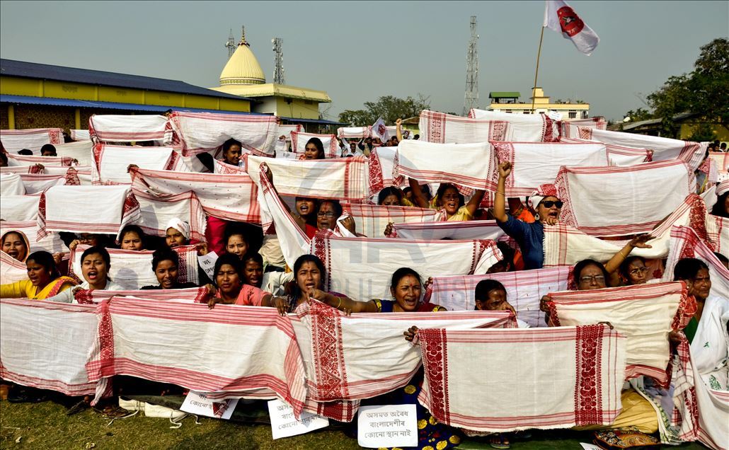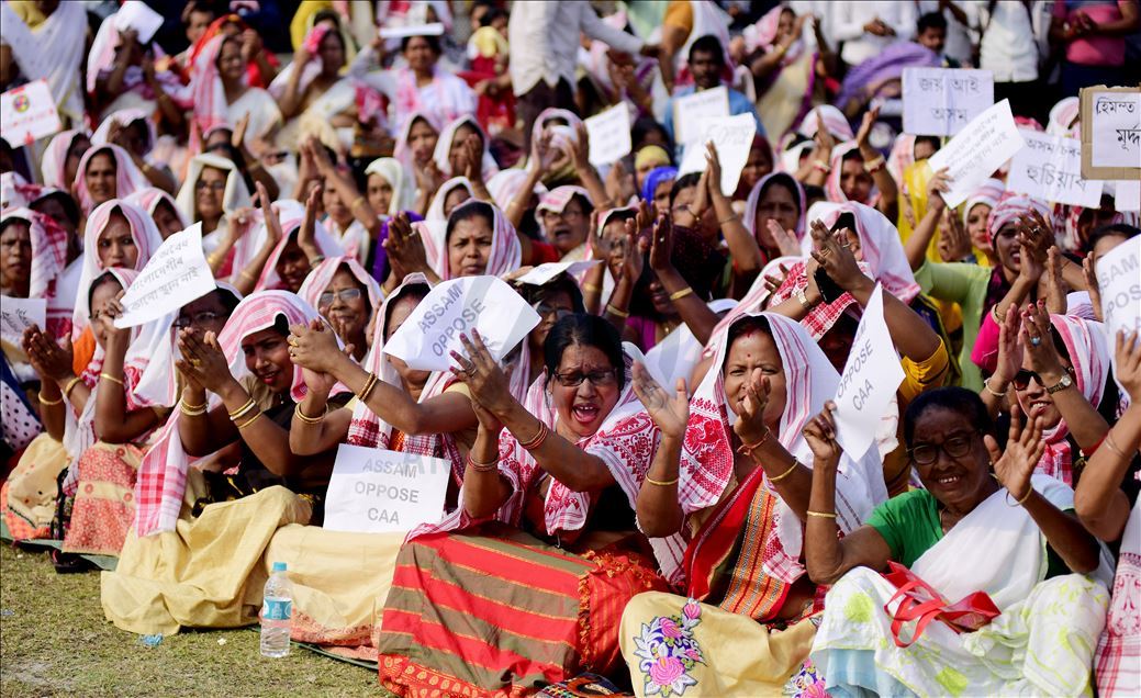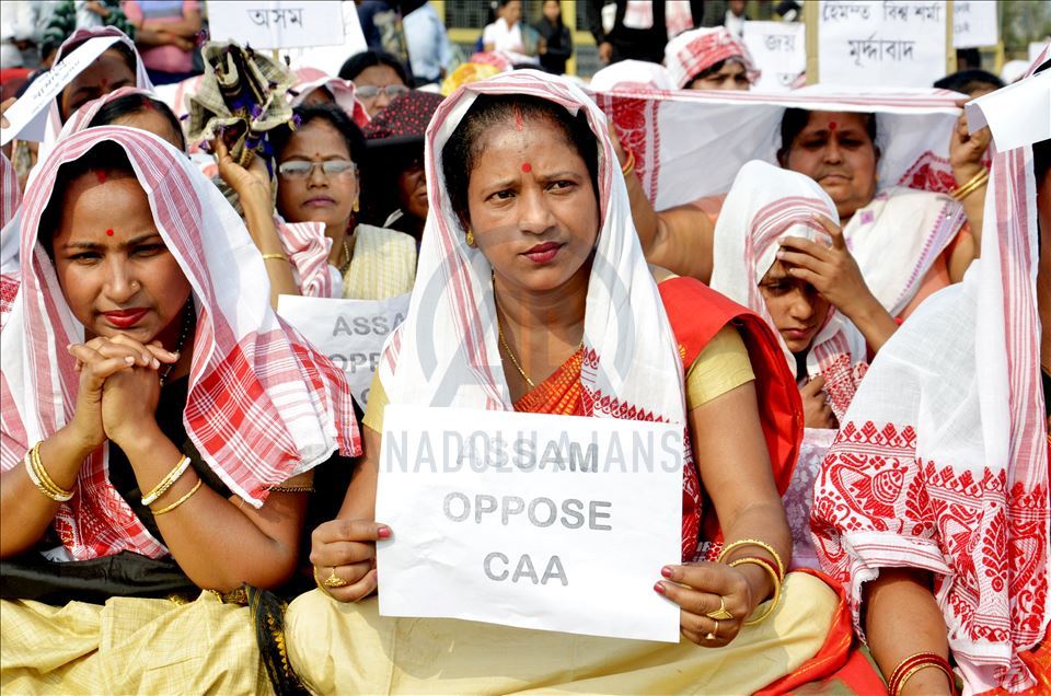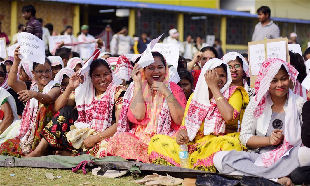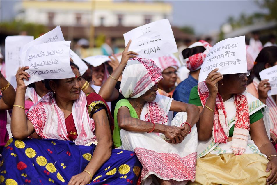 Hindistan'ın Guwahati kentinde toplanan göstericiler, ülkede Pakistan, Afganistan ve Bangladeş'ten gelen 6 dini gruba vatandaşlık yolunu açan ancak aynı durumdaki Müslüman göçmenleri kapsam dışı bırakan Vatandaşlık Yasası'na karşı protesto düzenledi. ( Hafiz Ahmed - Anadolu Ajansı )Hafiz Ahmed