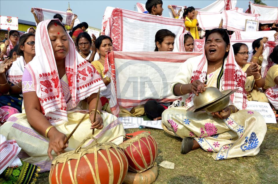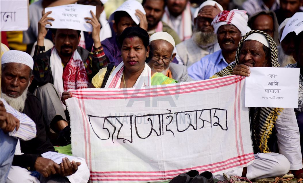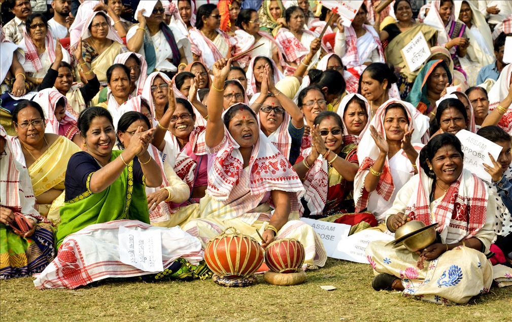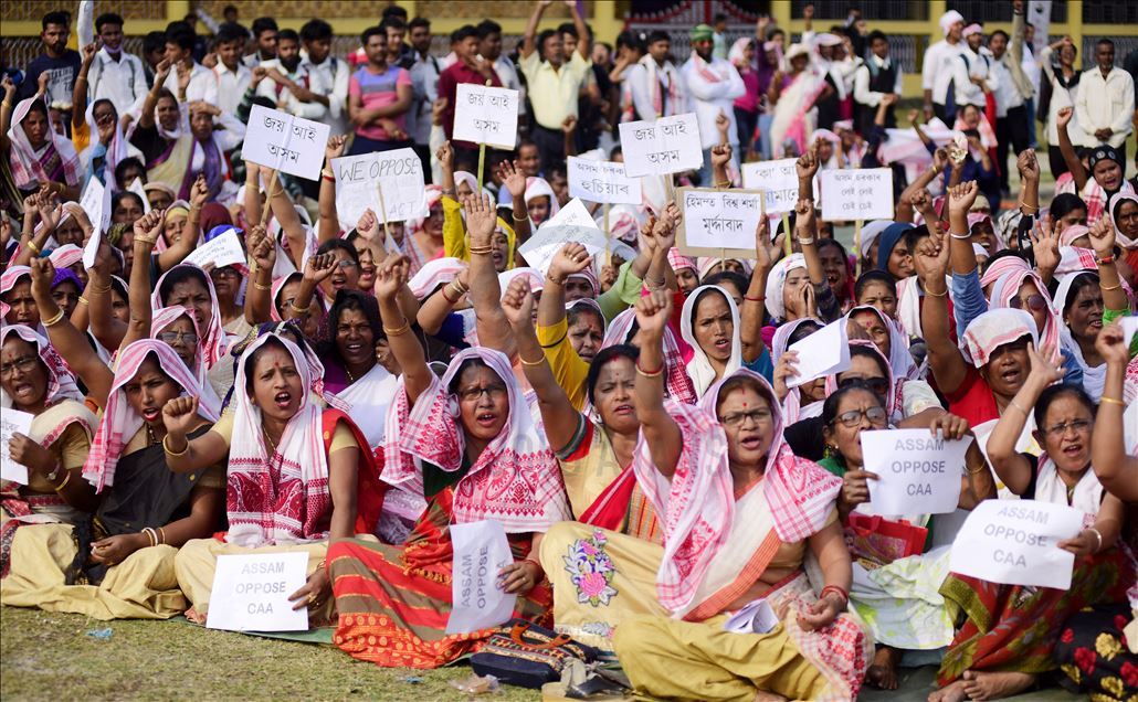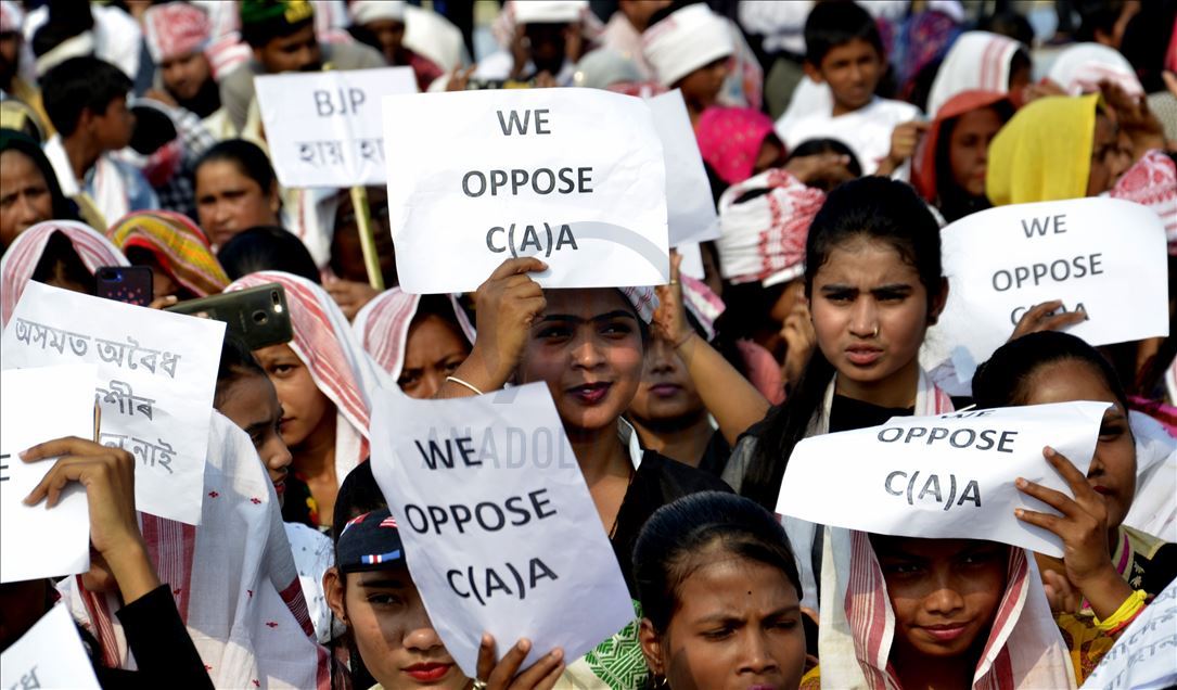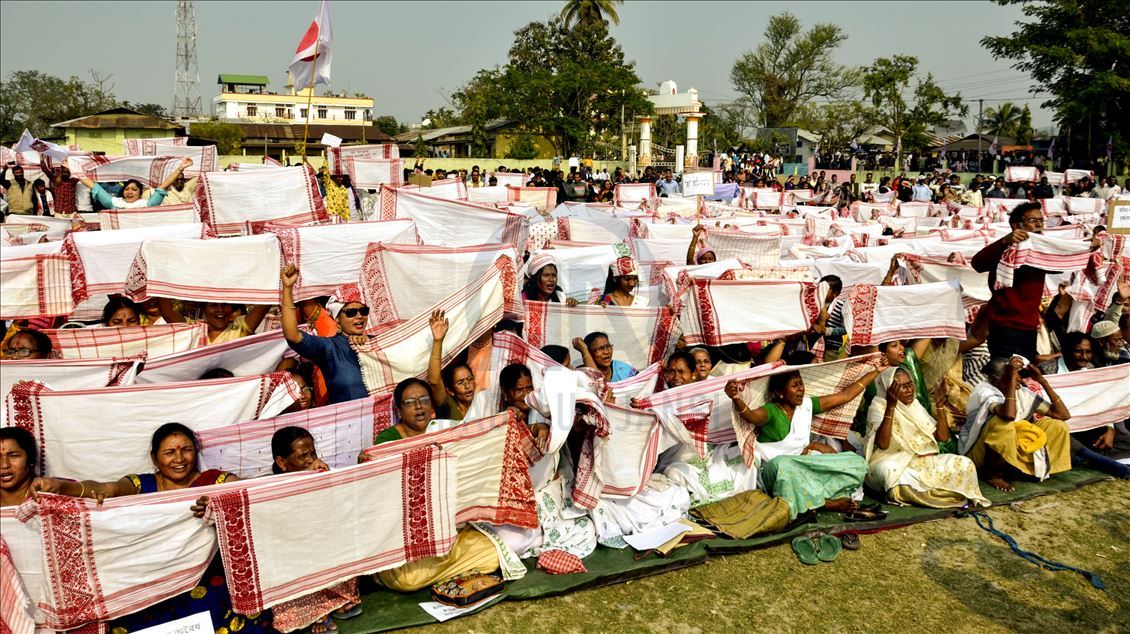 Hindistan'ın Guwahati kentinde toplanan göstericiler, ülkede Pakistan, Afganistan ve Bangladeş'ten gelen 6 dini gruba vatandaşlık yolunu açan ancak aynı durumdaki Müslüman göçmenleri kapsam dışı bırakan Vatandaşlık Yasası'na karşı protesto düzenledi. ( Hafiz Ahmed - Anadolu Ajansı )Hafiz Ahmed
