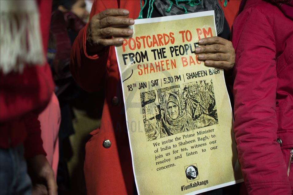 Hindistan'da Pakistan, Afganistan ve Bangladeş'ten gelen 6 dini gruba vatandaşlık yolunu açan ancak aynı durumdaki Müslüman göçmenleri kapsam dışı bırakan Vatandaşlık Yasası'na karşı protestolar devam ediyor. Jamia Millia Islamia üniversitesi öğrencileri Delhi'de devam eden oturma eylemine katılırken Shaheen Bagh'da oturma eylemlerine devam eden kadınlar Hindistan Başbakanı Narendra Modi'ye kartpostal gönderme kampanyası başlatarak başbakanın eylemlerine katılmasını talep etti.