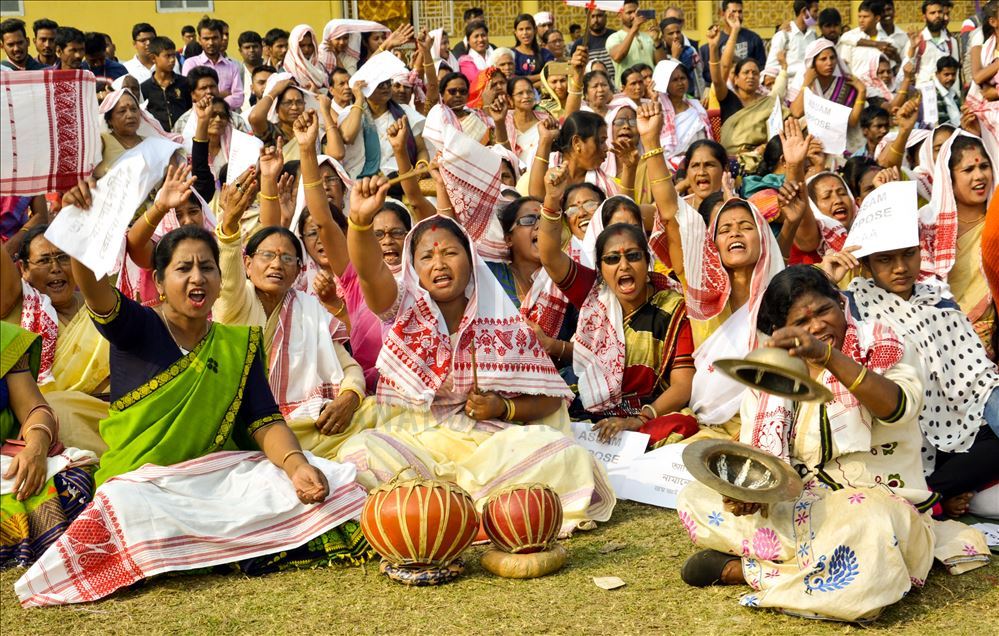 Hindistan'ın Guwahati kentinde toplanan göstericiler, ülkede Pakistan, Afganistan ve Bangladeş'ten gelen 6 dini gruba vatandaşlık yolunu açan ancak aynı durumdaki Müslüman göçmenleri kapsam dışı bırakan Vatandaşlık Yasası'na karşı protesto düzenledi.