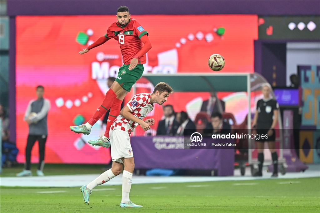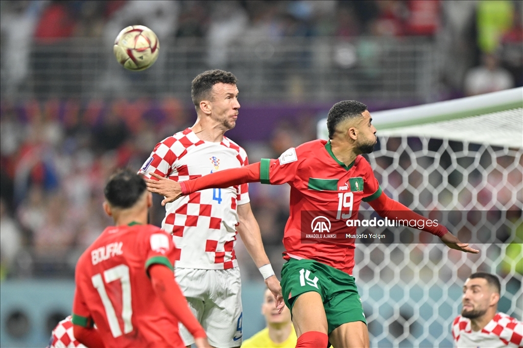 Katar'ın ev sahipliğini yaptığı 2022 FIFA Dünya Kupası üçüncülük maçında Hırvatistan ile Fas takımları, Khalifa International Stadyumu'nda karşılaştı. Hırvatistan takımından Ivan Perisic (4), bir pozisyonda Fas takımından Youssef En-Nesyri (19) ile mücadele etti.
