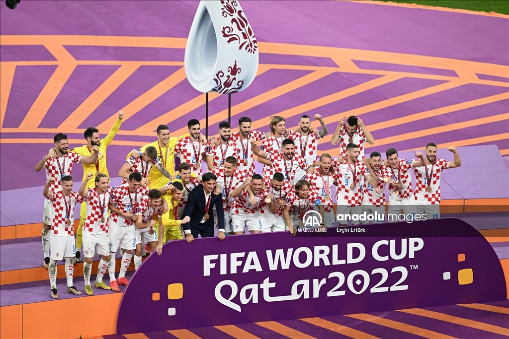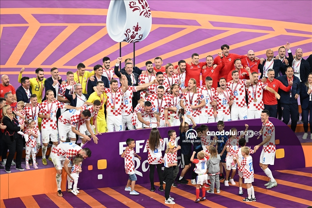 Katar'ın ev sahipliğini yaptığı 2022 FIFA Dünya Kupası üçüncülük maçında Hırvatistan ile Fas takımları, Khalifa International Stadyumu'nda karşılaştı. Karşılaşmayı kazanan Hırvatistan takımı oyuncuları, düzenlenen törenle madalyalarını aldı. ( Erçin Ertürk - Anadolu Ajansı )Erçin Ertürk