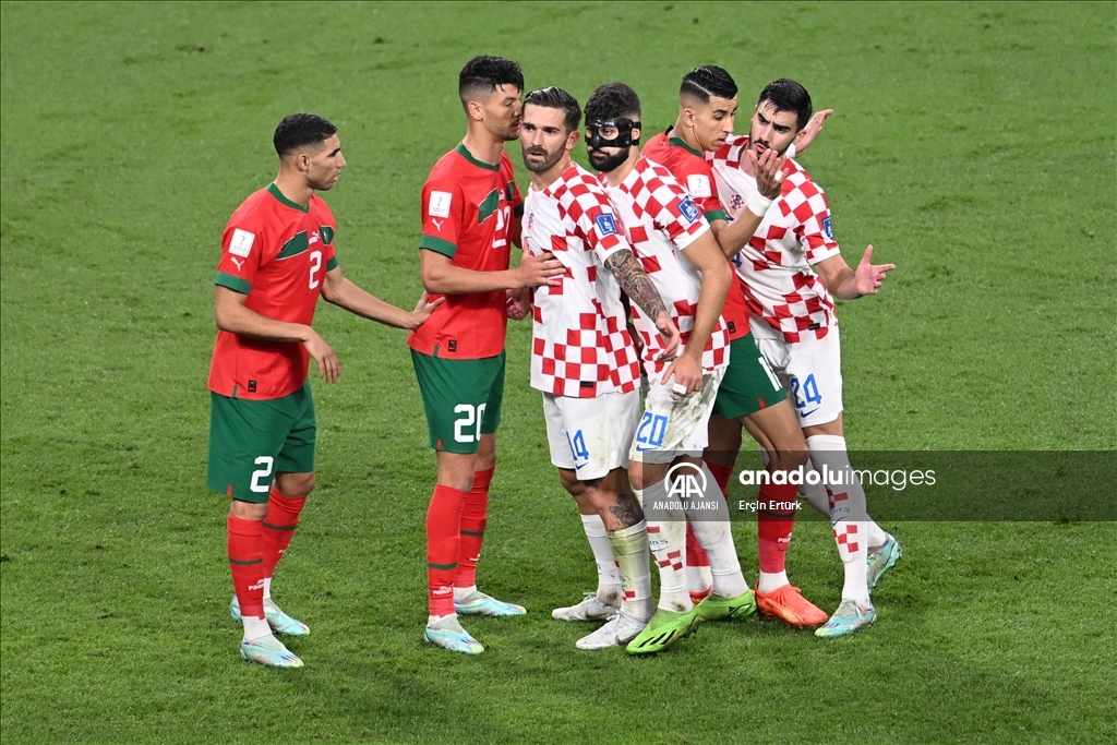 Katar'ın ev sahipliğini yaptığı 2022 FIFA Dünya Kupası üçüncülük maçında Hırvatistan ile Fas takımları, Khalifa International Stadyumu'nda karşılaştı. Bir pozisyon sonrasında iki takım oyuncuları arasında tartışma yaşandı. ( Erçin Ertürk - Anadolu Ajansı )Erçin Ertürk