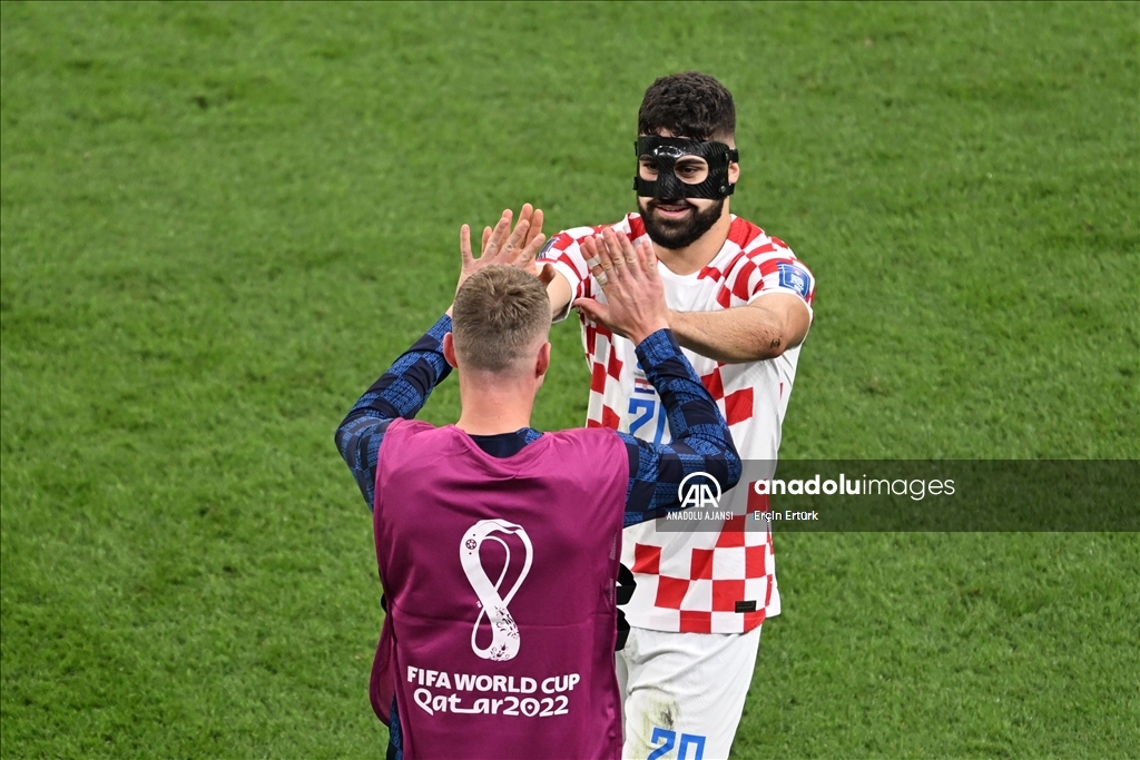 Katar'ın ev sahipliğini yaptığı 2022 FIFA Dünya Kupası üçüncülük maçında Hırvatistan ile Fas takımları, Khalifa International Stadyumu'nda karşılaştı. Hırvatistan takımından Josko Gvardiol (20) gol sevinci yaşadı. ( Erçin Ertürk - Anadolu Ajansı )Erçin Ertürk
